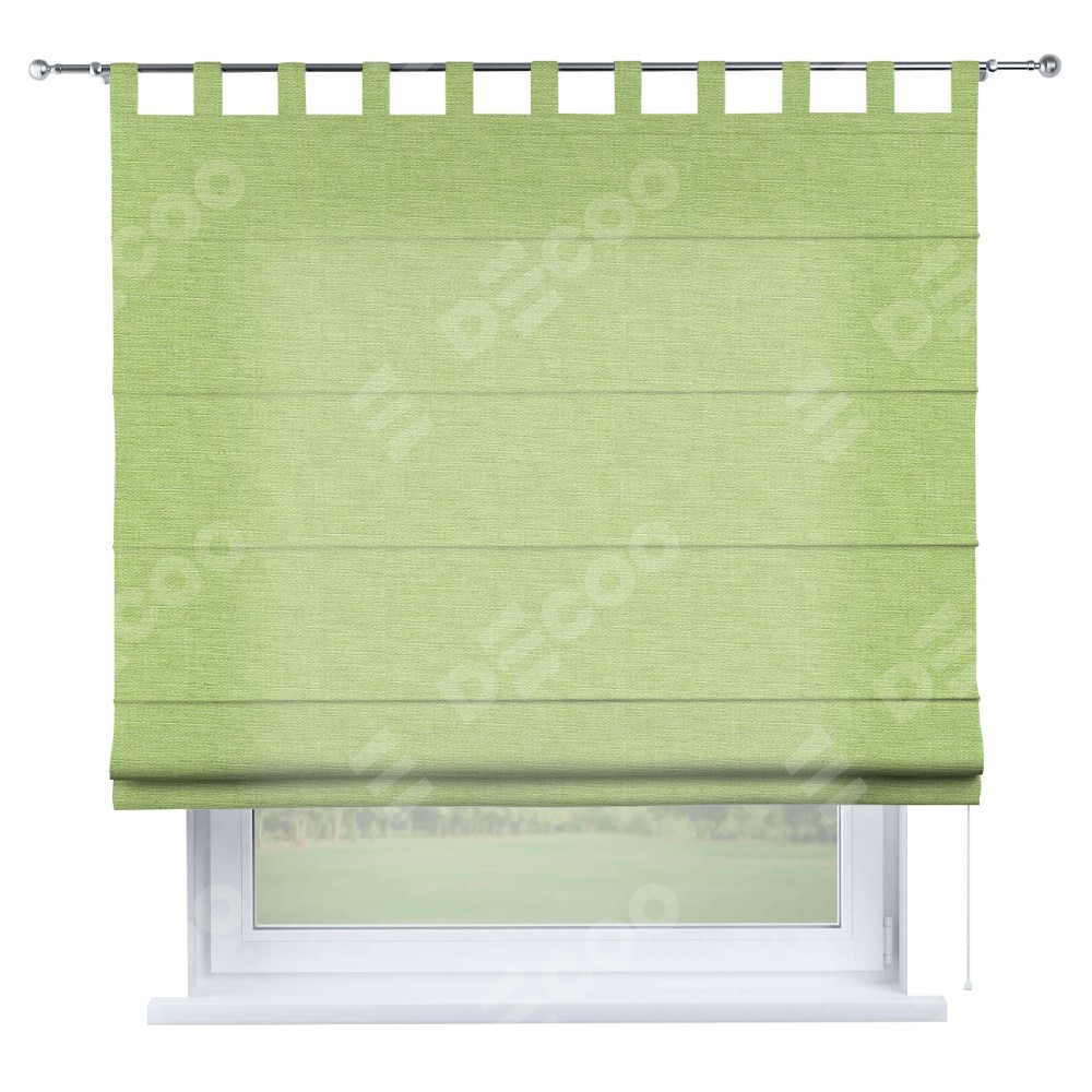 Римская штора производителя «Cortin», используется для проёма, пошита из ткани лён зеленый, артикул ткани 85906. Данная модель пошита на петлях, комплектуется на выбор круглым карнизом и подходит для монтажа на стену. Римская штора на петлях имеет простую систему регулировки высоты, отличительным преимуществом данной модели является простой способ монтажа. Достаточно повесить ее на трубу и штора готова!