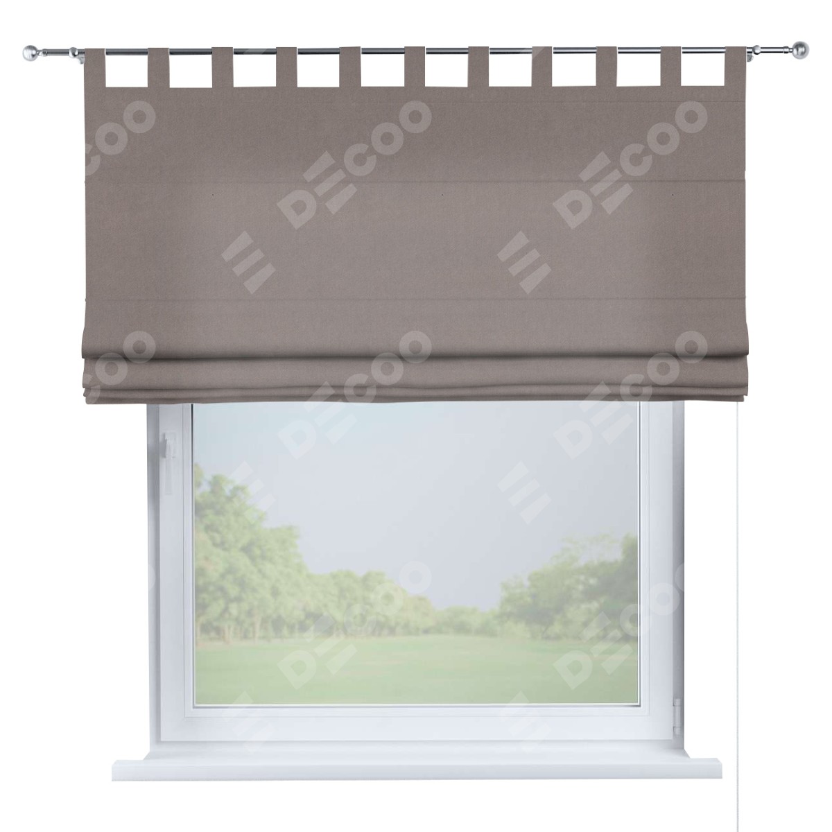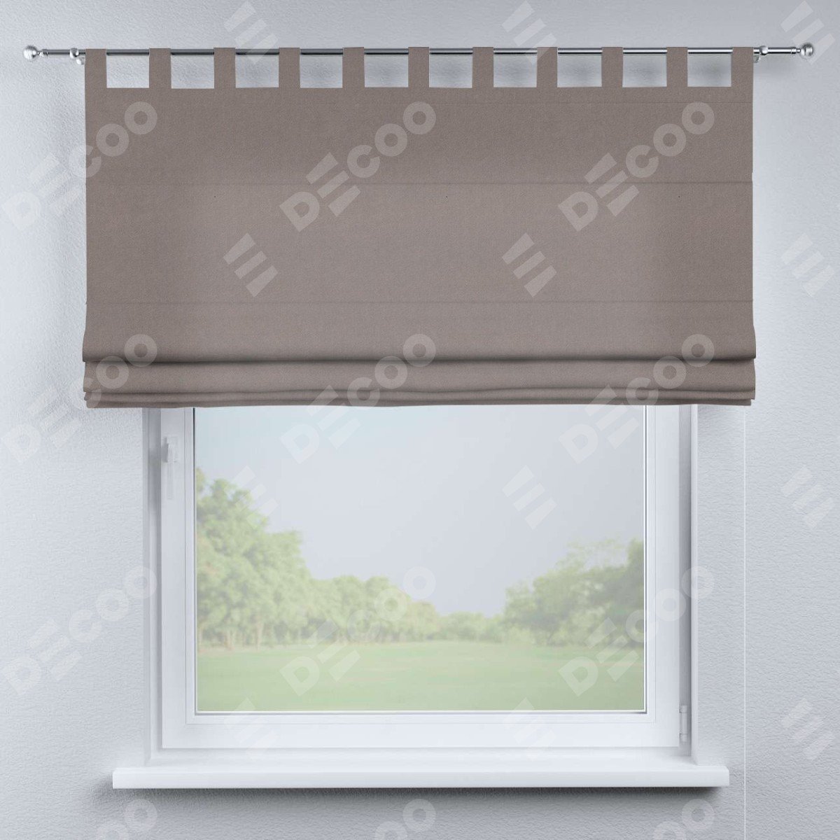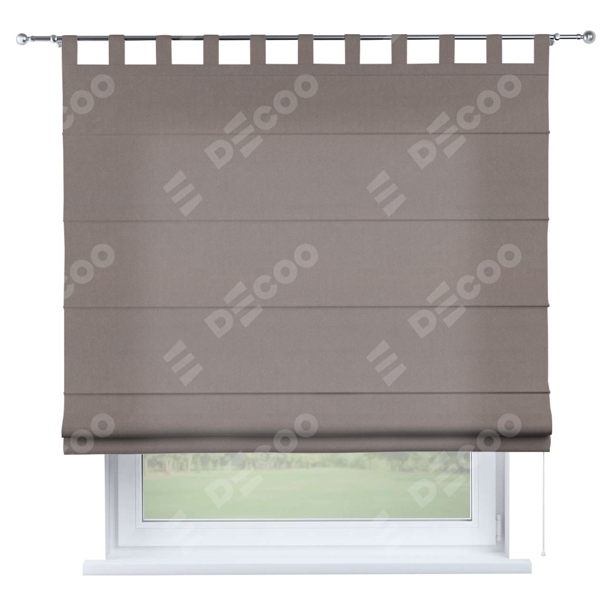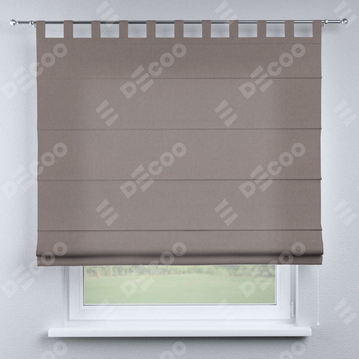Римская штора производителя «Cortin», используется для проёма, пошита из ткани вельвет тёмно-бежевый, артикул ткани 82527. Данная модель пошита на петлях, комплектуется на выбор круглым карнизом и подходит для монтажа на стену. Римская штора на петлях имеет простую систему регулировки высоты, отличительным преимуществом данной модели является простой способ монтажа. Достаточно повесить ее на трубу и штора готова!