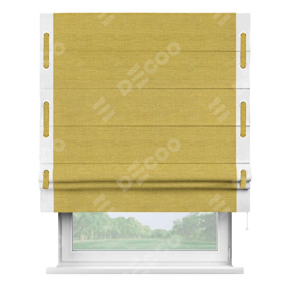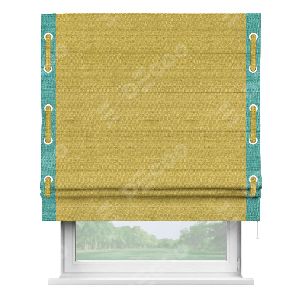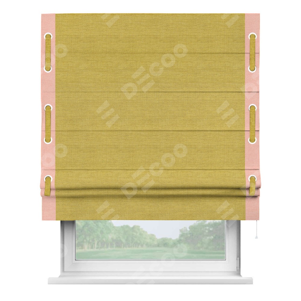 Римская штора «Кортин» с кантом Стрим Дуо (люверсы с пояском), для проема, ткань лён светло-салатовый