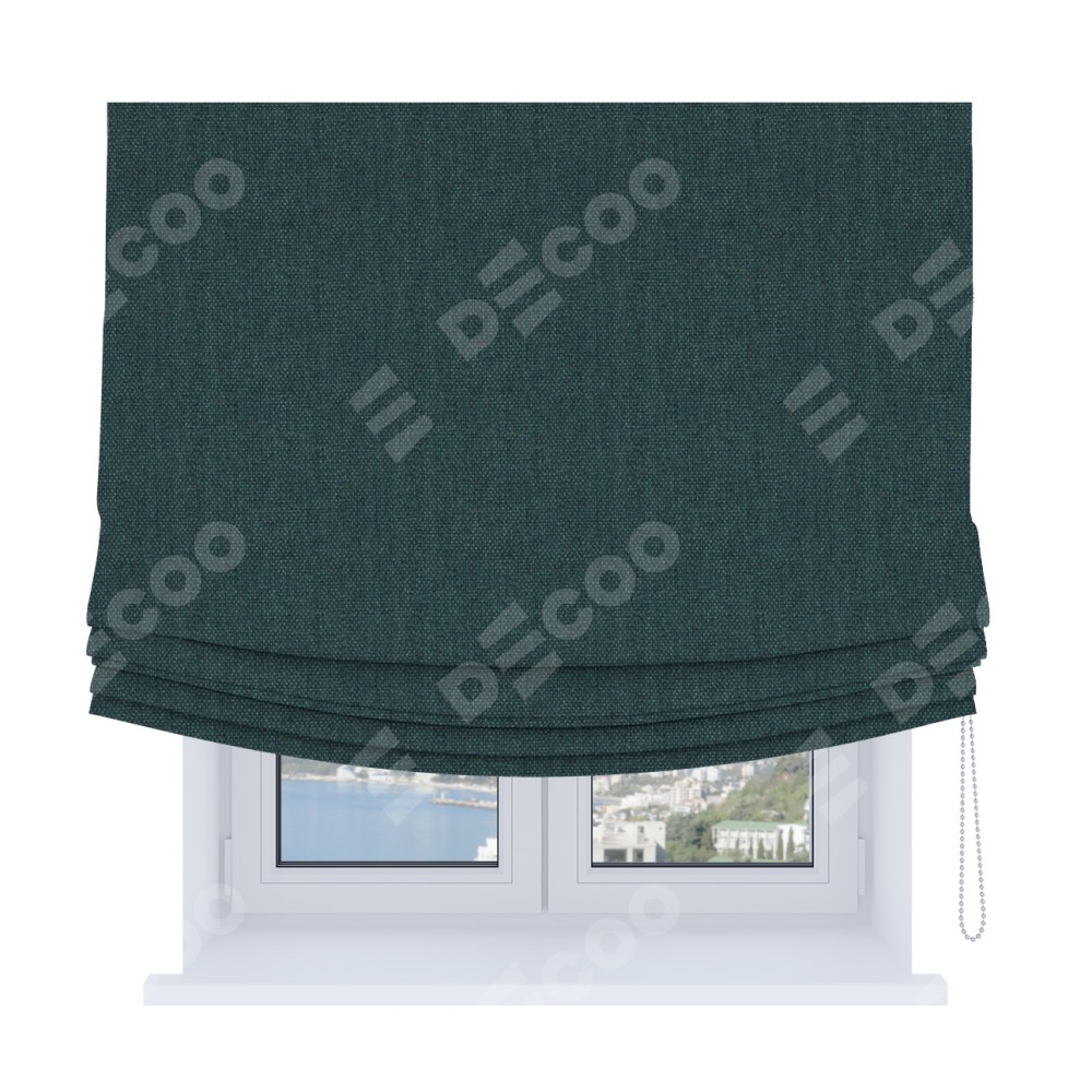 Римская штора Soft производителя «Cortin», используется для проёма, пошита из ткани лён димаут серо-синий, артикул ткани 03238. Имеет универсальный механизм и подходит для монтажа: на потолок, на стену и в нишу. В отличие от стандартных римских штор, римская штора Soft не имеет горизонтальных вставок и нижнего отвеса. Это позволяет ткани произвольно драпироваться в свободные мягкие складки.
