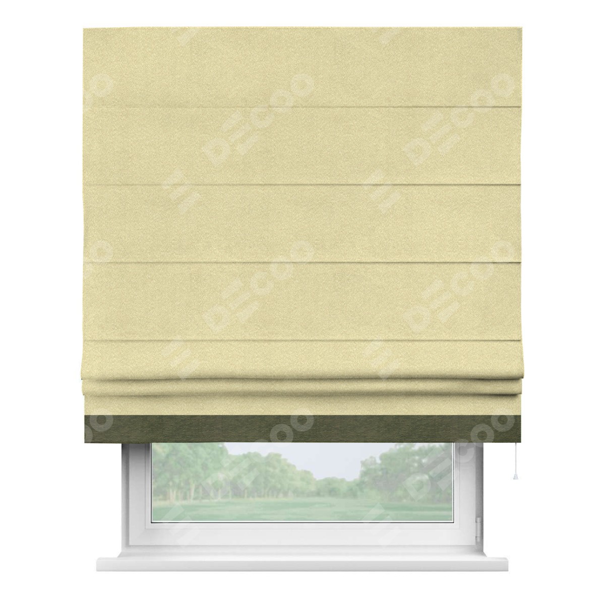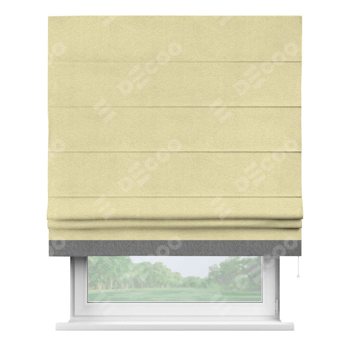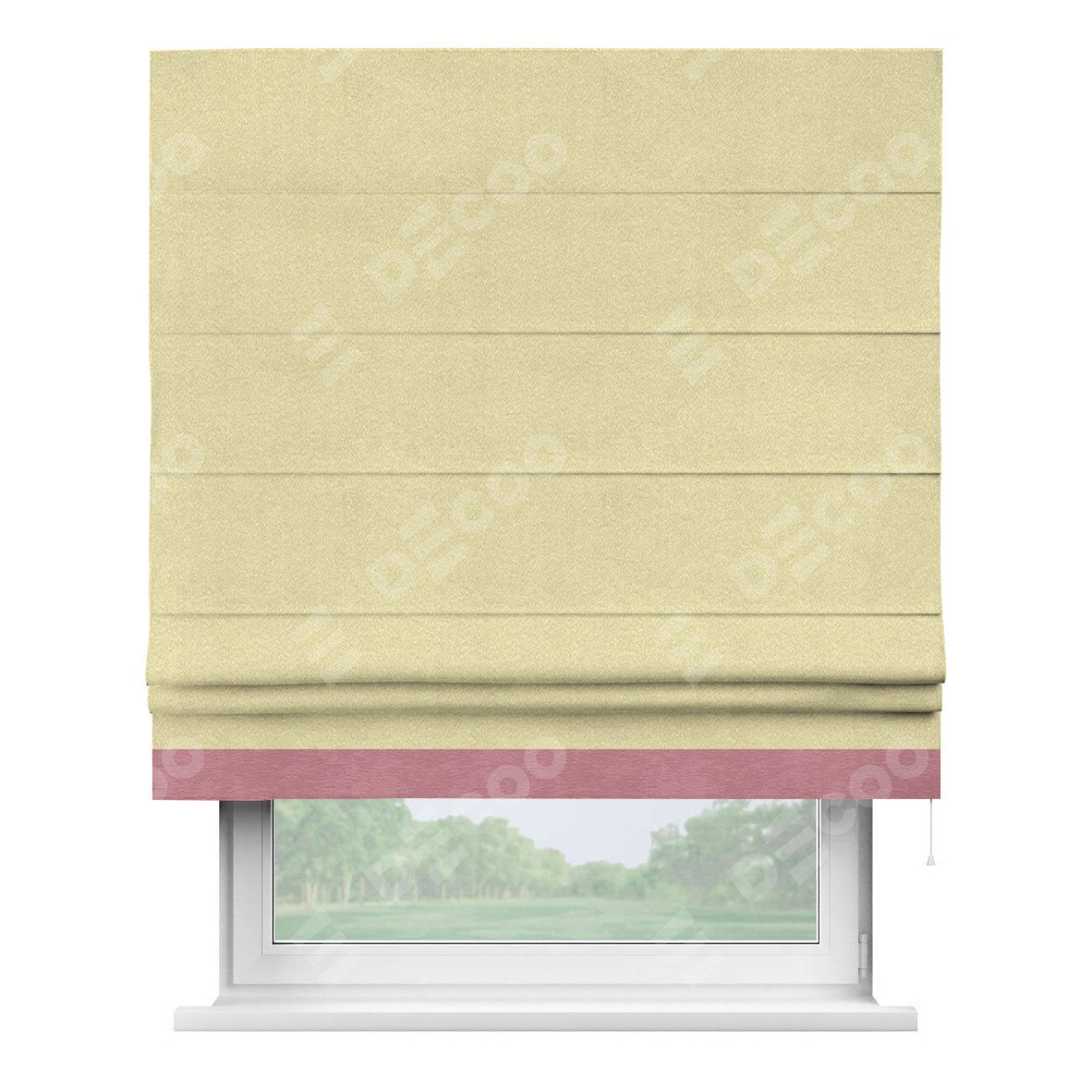 Римская штора производителя «Cortin», используется для проёма, пошита из ткани софт однотонный молочный, артикул 11938. Отделка шторы кантом «Джестер», ткань для канта используется из софта разной расцветки на выбор. Имеет универсальный механизм и подходит для монтажа: на потолок, на стену и в нишу.