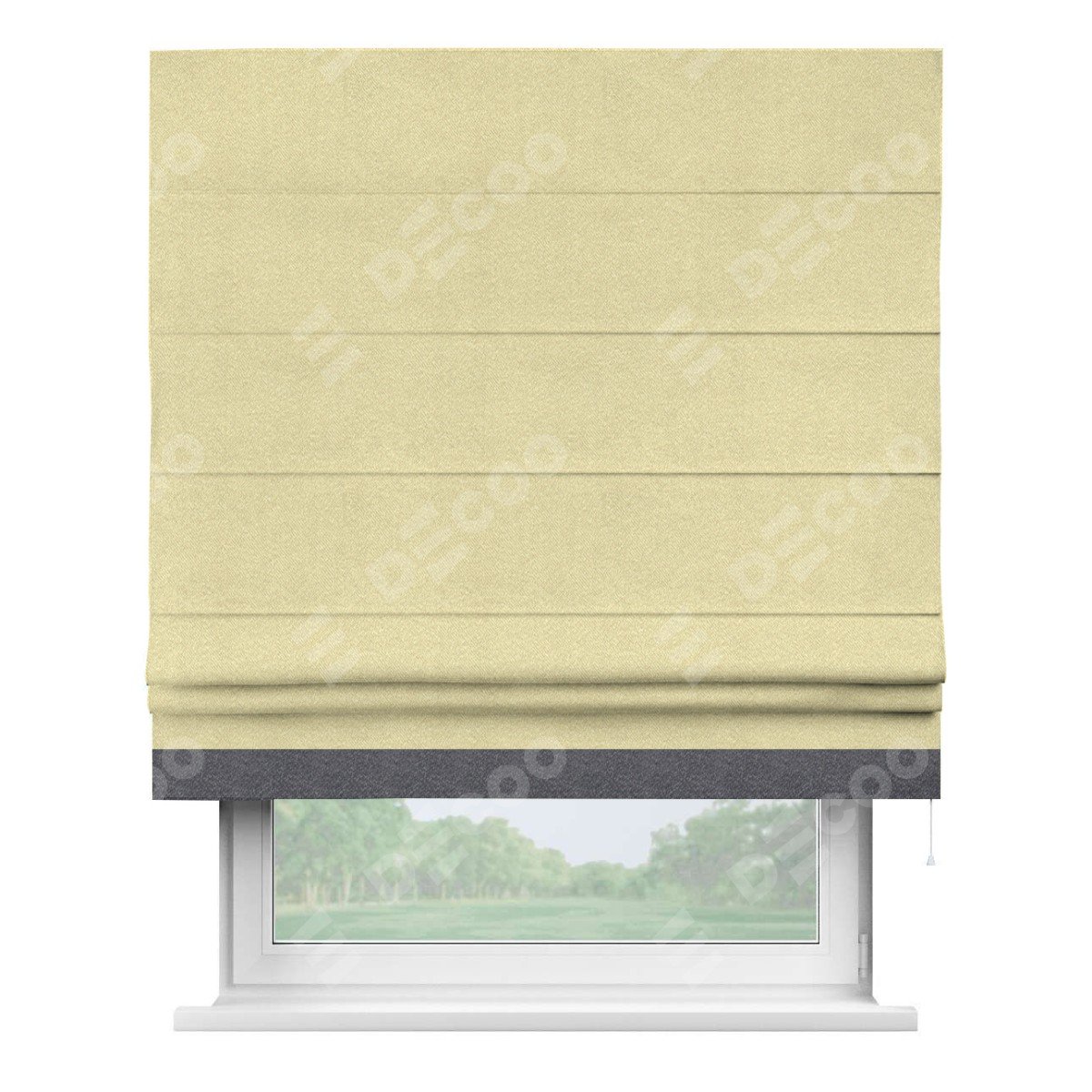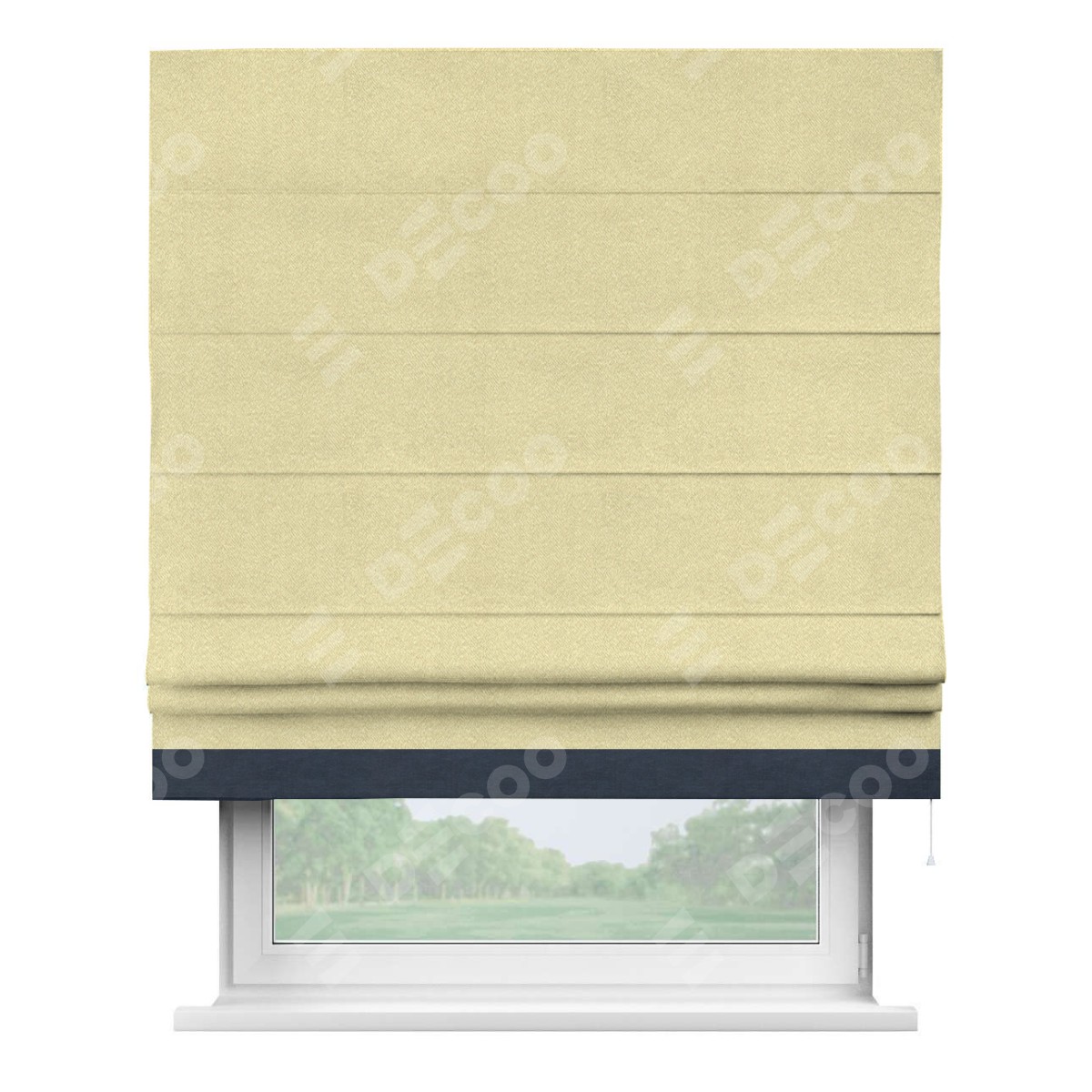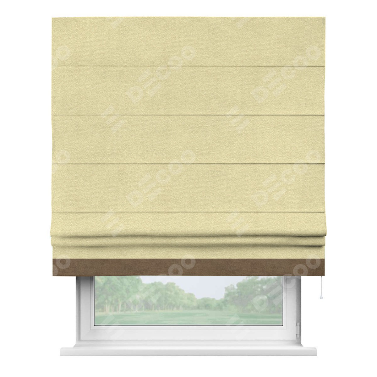 Римская штора производителя «Cortin», используется для проёма, пошита из ткани софт однотонный молочный, артикул 11938. Отделка шторы кантом «Джестер», ткань для канта используется из софта разной расцветки на выбор. Имеет универсальный механизм и подходит для монтажа: на потолок, на стену и в нишу.