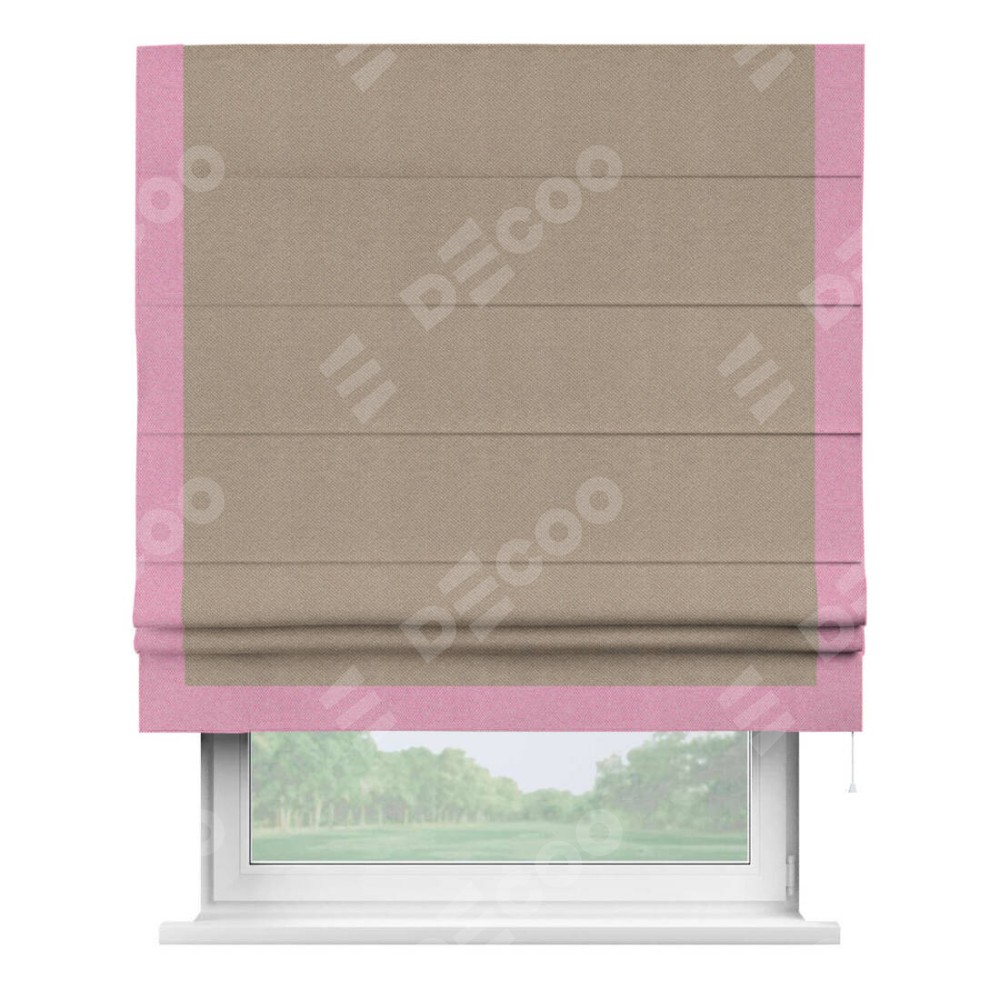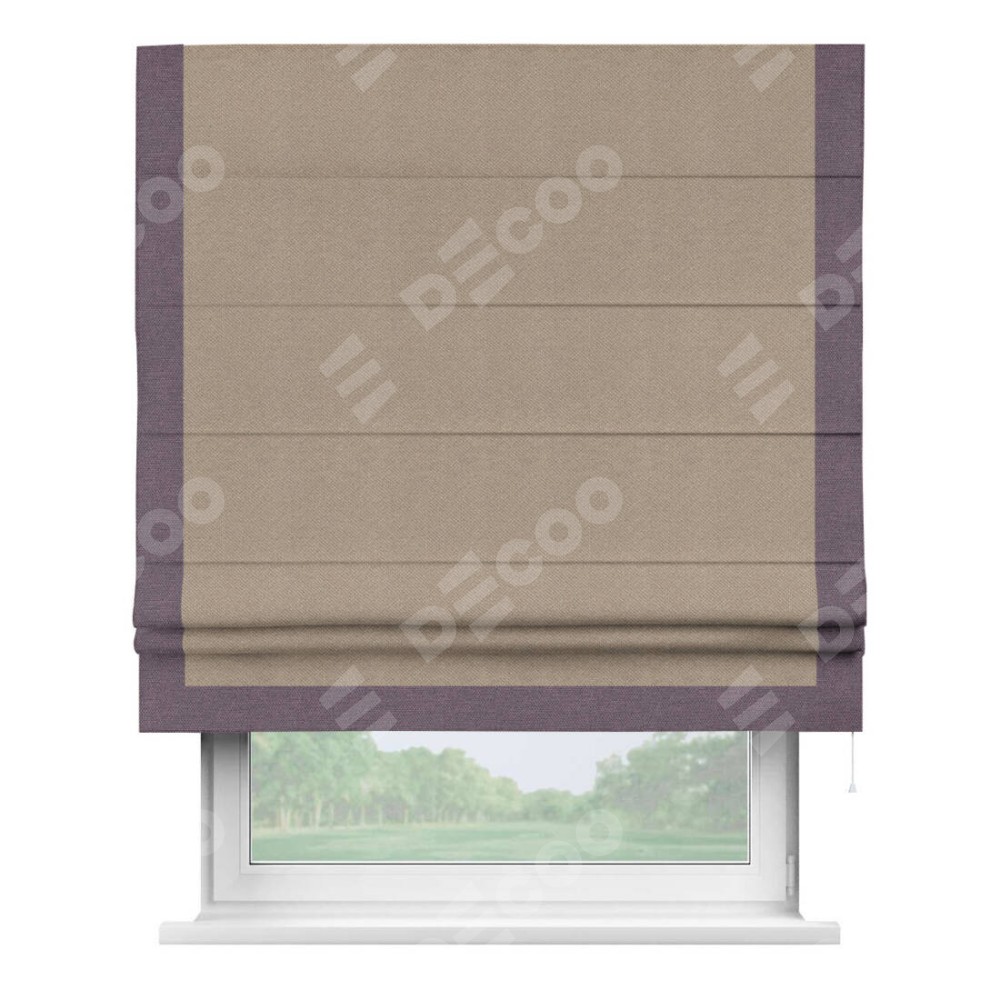 Римская штора «Кортин» с кантом Виктория, для проема, ткань лён димаут, светло-бежевый