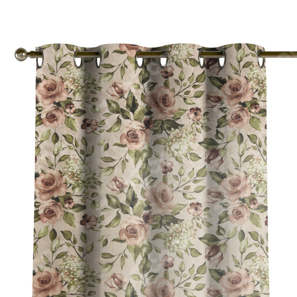 Комплект штор на люверсах ткань «Розы бежевые» ширина от 140 см