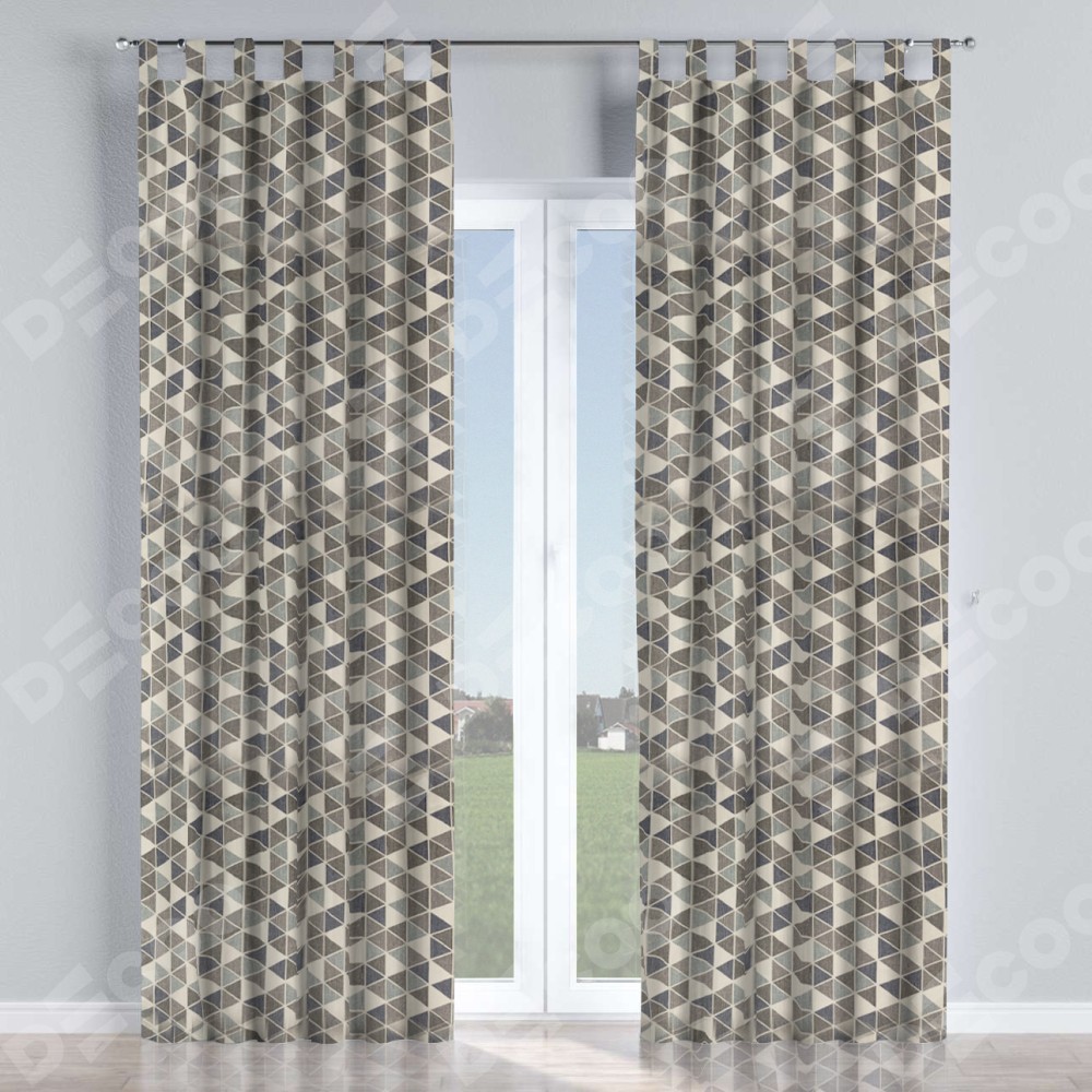 Комплект прямых штор, от производителя «Cortin», пошиты из ткани димаут «Треугольники синие», артикул ткани 23022. Данная модель пошита на петлях, комплектуется на выбор круглым карнизом и подходит для монтажа на стену или потолок. Прямые шторы на петлях шьются по стандарту с коэффициентом 1/2 (на 100 см. ширины проёма 200 см. ширины ткани), отличительным преимуществом данной модели является простой способ монтажа. Достаточно повесить ее на трубу и штора готова!
