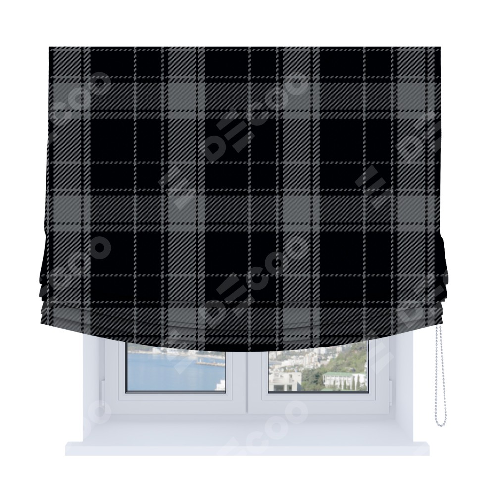 Римская штора Soft производителя «Cortin», используется для проёма, пошита из ткани блэкаут с нанесением сублимационной печати «Стильная клетка». Имеет универсальный механизм и подходит для монтажа: на потолок, на стену и в нишу. В отличие от стандартных римских штор, римская штора Soft не имеет горизонтальных вставок и нижнего отвеса. Это позволяет ткани произвольно драпироваться в свободные мягкие складки.