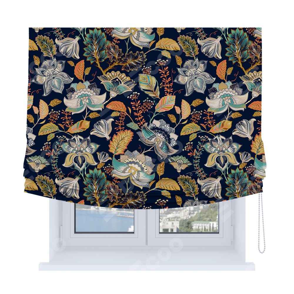 Римская штора Soft производителя «Cortin», используется для проёма, пошита из ткани блэкаут с нанесением сублимационной печати «Тёмный букет». Имеет универсальный механизм и подходит для монтажа: на потолок, на стену и в нишу. В отличие от стандартных римских штор, римская штора Soft не имеет горизонтальных вставок и нижнего отвеса. Это позволяет ткани произвольно драпироваться в свободные мягкие складки.