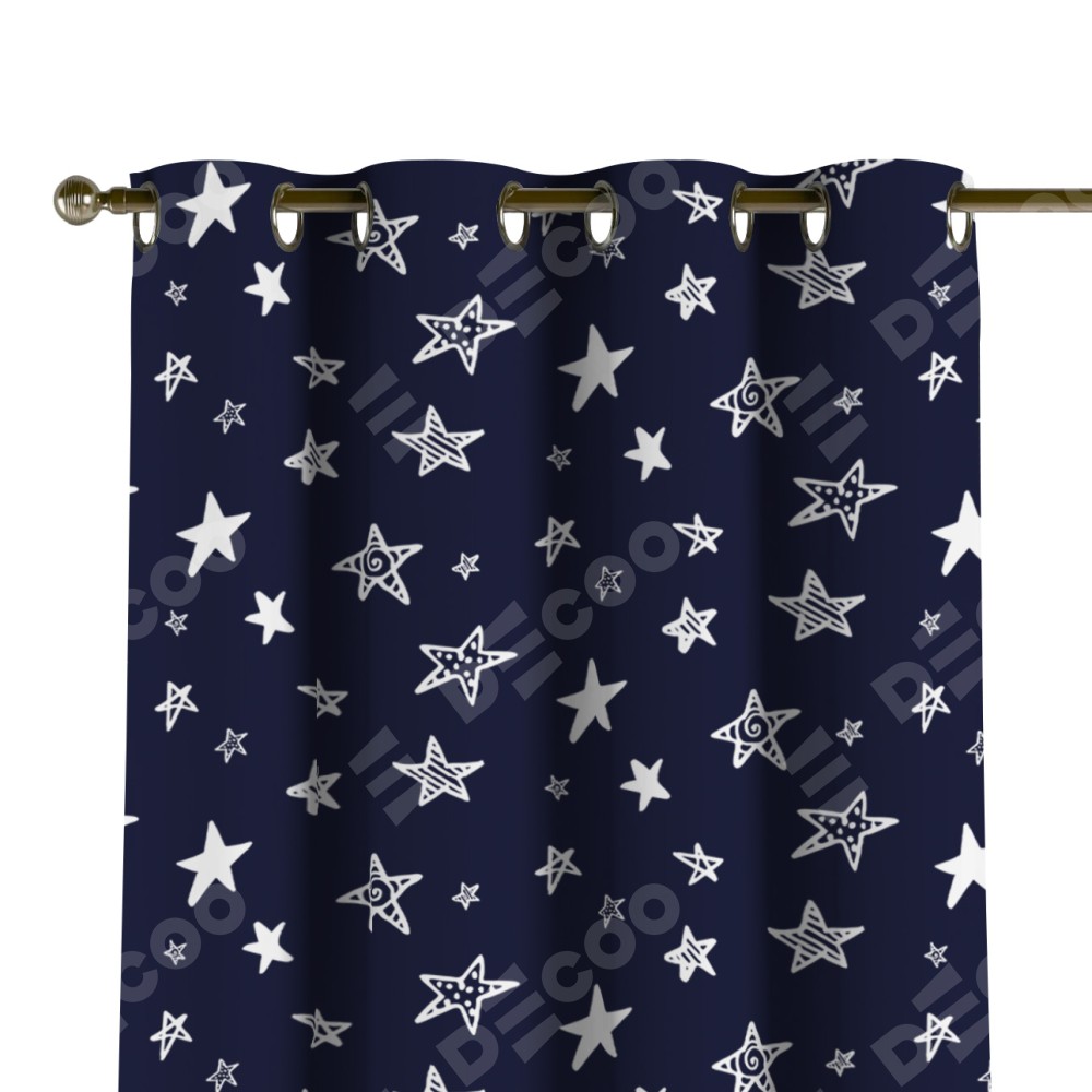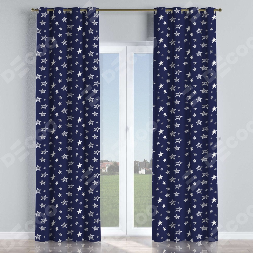 Комплект прямых штор, от производителя «Cortin», пошиты из ткани блэкаут с нанесением сублимационной печати «Ночные звёзды». Данная модель пошита на люверсах, комплектуется на выбор круглым карнизом и подходит для монтажа на стену или потолок. Прямые шторы на люверсах шьются по стандарту с коэффициентом 1/2 (на 100 см. ширины проёма 200 см. ширины ткани), отличительным преимуществом данной модели является простой способ монтажа. Достаточно повесить ее на трубу и штора готова!