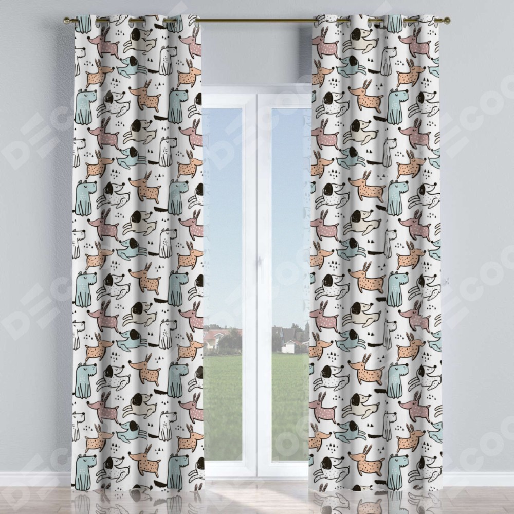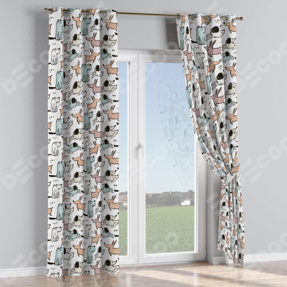 Комплект прямых штор, от производителя «Cortin», пошиты из ткани блэкаут с нанесением сублимационной печати «Очаровательные щеночки». Данная модель пошита на люверсах, комплектуется на выбор круглым карнизом и подходит для монтажа на стену или потолок. Прямые шторы на люверсах шьются по стандарту с коэффициентом 1/2 (на 100 см. ширины проёма 200 см. ширины ткани), отличительным преимуществом данной модели является простой способ монтажа. Достаточно повесить ее на трубу и штора готова!