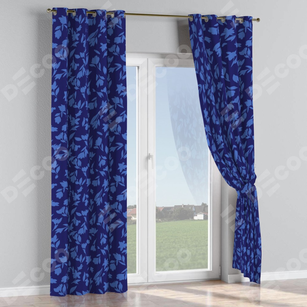 Комплект прямых штор, от производителя «Cortin», пошиты из ткани блэкаут с нанесением сублимационной печати «Синие цветы». Данная модель пошита на люверсах, комплектуется на выбор круглым карнизом и подходит для монтажа на стену или потолок. Прямые шторы на люверсах шьются по стандарту с коэффициентом 1/2 (на 100 см. ширины проёма 200 см. ширины ткани), отличительным преимуществом данной модели является простой способ монтажа. Достаточно повесить ее на трубу и штора готова!