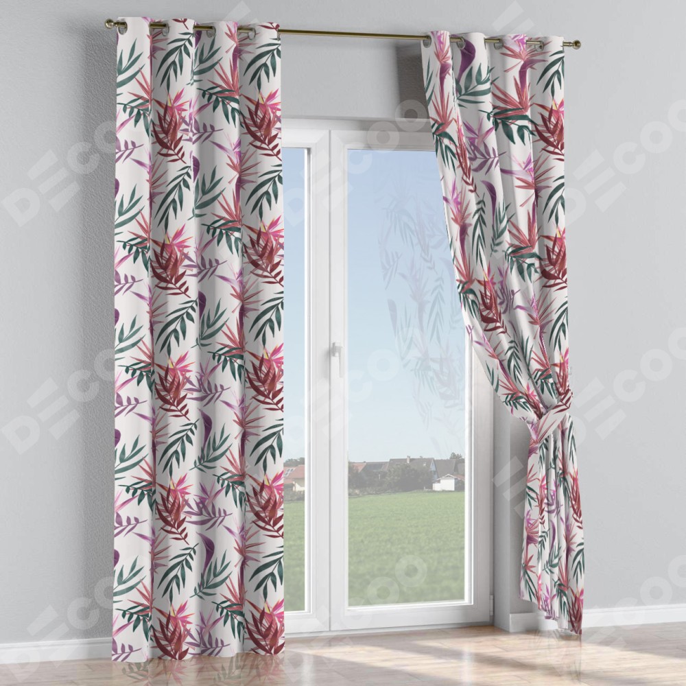 Комплект прямых штор, от производителя «Cortin», пошиты из ткани блэкаут с нанесением сублимационной печати «Тропические побеги». Данная модель пошита на люверсах, комплектуется на выбор круглым карнизом и подходит для монтажа на стену или потолок. Прямые шторы на люверсах шьются по стандарту с коэффициентом 1/2 (на 100 см. ширины проёма 200 см. ширины ткани), отличительным преимуществом данной модели является простой способ монтажа. Достаточно повесить ее на трубу и штора готова!