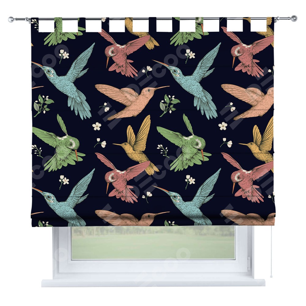 Римская штора «Кортин» на петлях «Птицы и цветы»