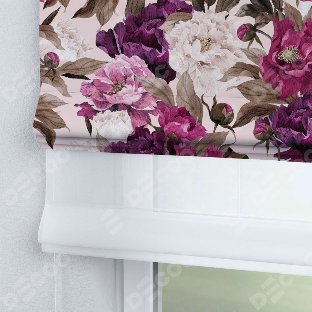 Римская штора «Кортин» день-ночь «Великолепные пионы»
