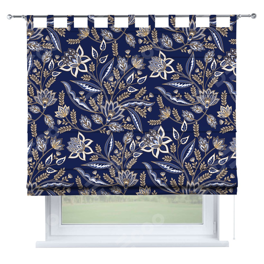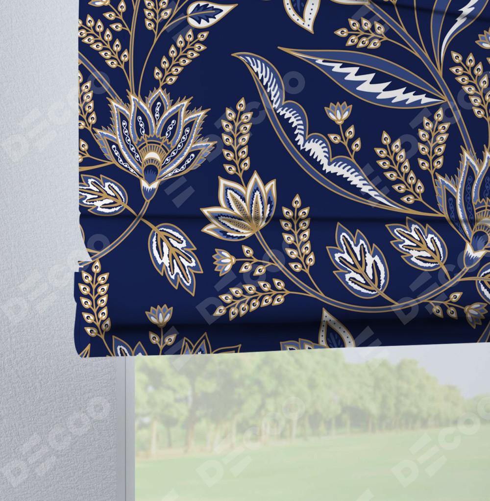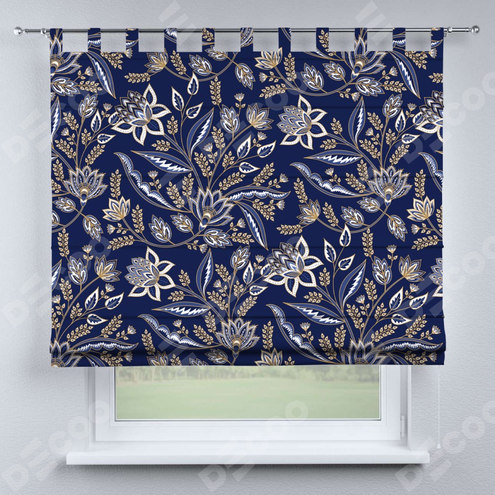 Римская штора производителя «Cortin», используется для проёма, пошита из ткани блэкаут с нанесением сублимационной печати «Индиго батик». Данная модель пошита на петлях, комплектуется на выбор круглым карнизом и подходит для монтажа на стену. Римская штора на петлях имеет простую систему регулировки высоты, отличительным преимуществом данной модели является простой способ монтажа. Достаточно повесить ее на трубу и штора готова!