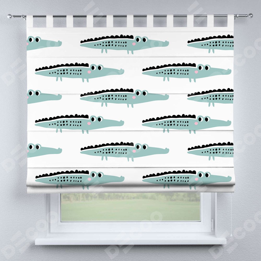 Римская штора производителя «Cortin», используется для проёма, пошита из ткани блэкаут с нанесением сублимационной печати «Мистер Крок». Данная модель пошита на петлях, комплектуется на выбор круглым карнизом и подходит для монтажа на стену. Римская штора на петлях имеет простую систему регулировки высоты, отличительным преимуществом данной модели является простой способ монтажа. Достаточно повесить ее на трубу и штора готова!
