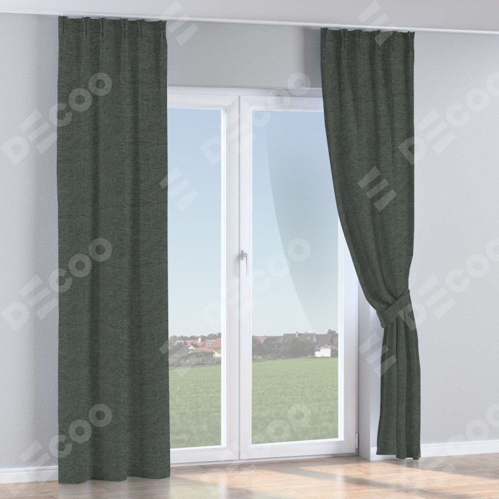 Комплект прямых штор, от производителя «Cortin», пошиты из ткани стиф димаут графит, артикул ткани 44026. С изнаночной стороны в верхней части штор пристрачивается шторная лента с декоративными складками «Кустик». Для создания элегантных складок прямые шторы шьются по стандарту с коэффициентом 1:2 (на 100 см. ширины проёма 200 см. ширины ткани).