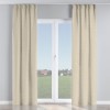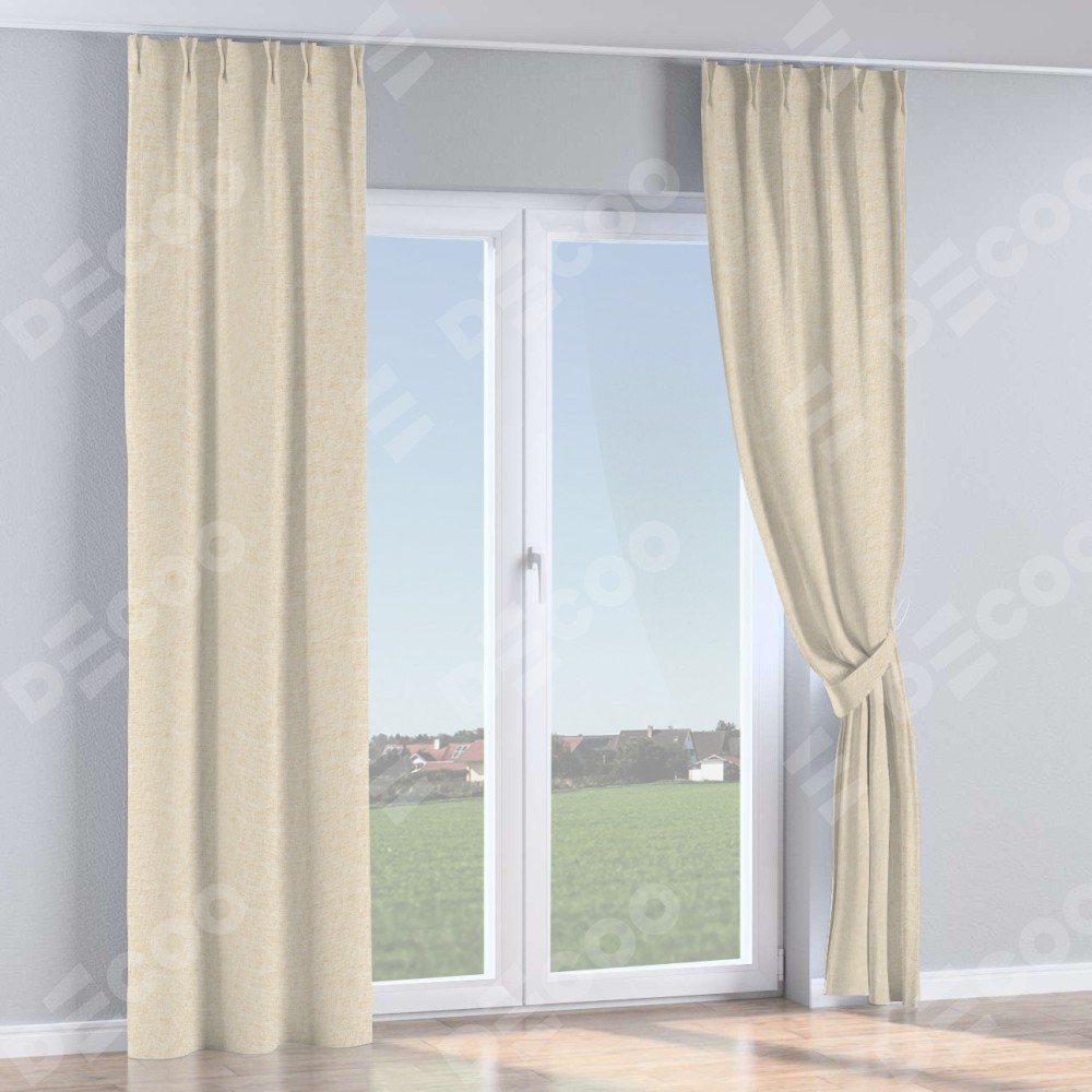 Комплект прямых штор, от производителя «Cortin», пошиты из ткани стиф димаут молочный, артикул ткани 18082. С изнаночной стороны в верхней части штор пристрачивается шторная лента с декоративными складками «Кустик». Для создания элегантных складок прямые шторы шьются по стандарту с коэффициентом 1:2 (на 100 см. ширины проёма 200 см. ширины ткани).