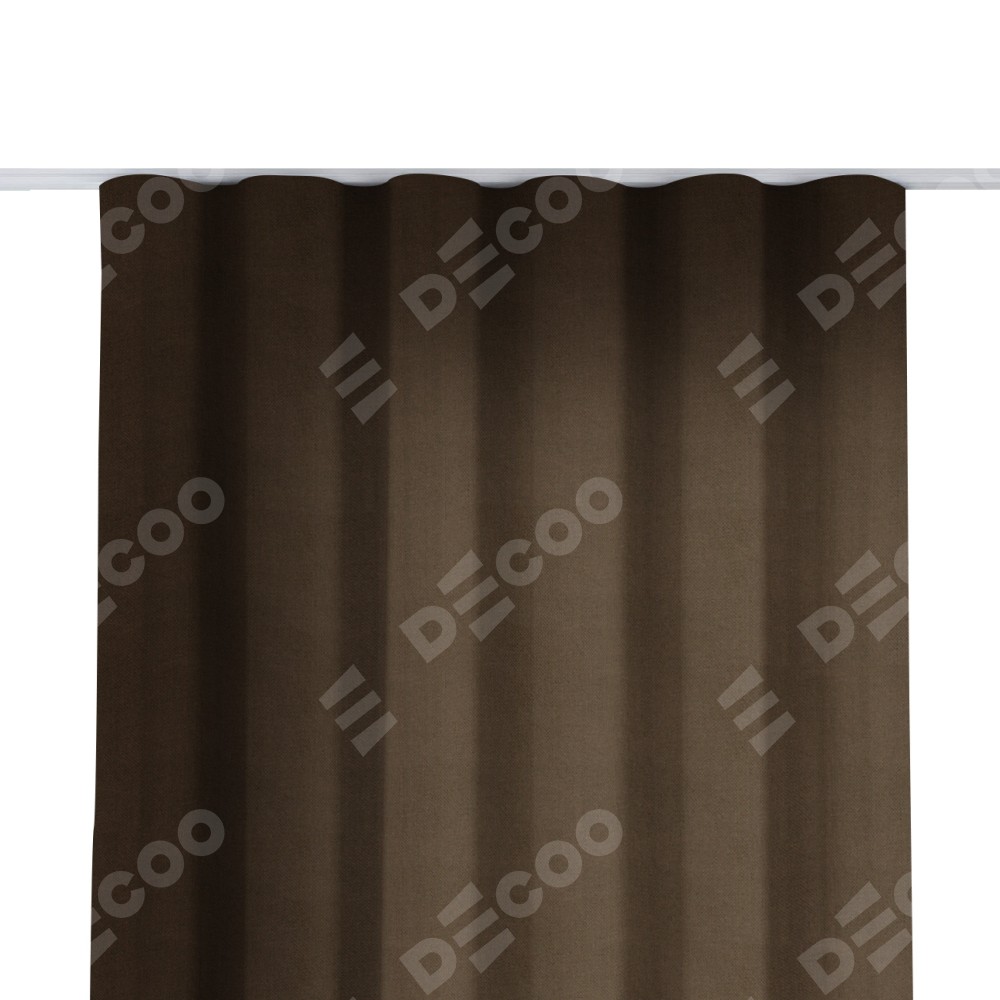 Комплект прямых штор, от производителя «Cortin», пошиты из ткани вельвет тёмно-коричневый, артикул ткани 30991. С изнаночной стороны в верхней части штор пристрачивается шторная лента с декоративными складками «Волна». Для создания элегантных складок прямые шторы шьются по стандарту с коэффициентом 1:2 (на 100 см. ширины проёма 200 см. ширины ткани).