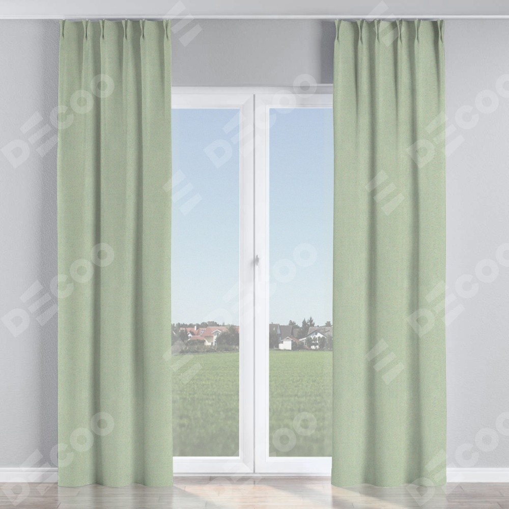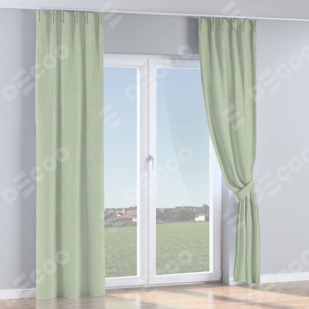 Комплект прямых штор, от производителя «Cortin», пошиты из ткани блэкаут однотонный светло-серый, артикул ткани 29332−2. С изнаночной стороны в верхней части штор пристрачивается шторная лента с декоративными складками «Кустик». Для создания элегантных складок прямые шторы шьются по стандарту с коэффициентом 1:2 (на 100 см. ширины проёма 200 см. ширины ткани).