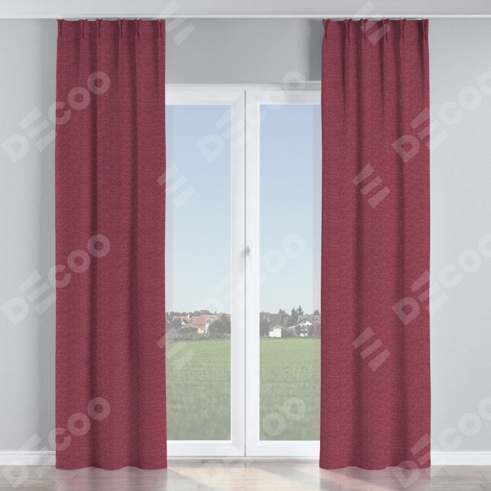 Комплект прямых штор, от производителя «Cortin», пошиты из ткани лён димаут марсала, артикул ткани 1602. С изнаночной стороны в верхней части штор пристрачивается шторная лента с декоративными складками «Кустик». Для создания элегантных складок прямые шторы шьются по стандарту с коэффициентом 1:2 (на 100 см. ширины проёма 200 см. ширины ткани).