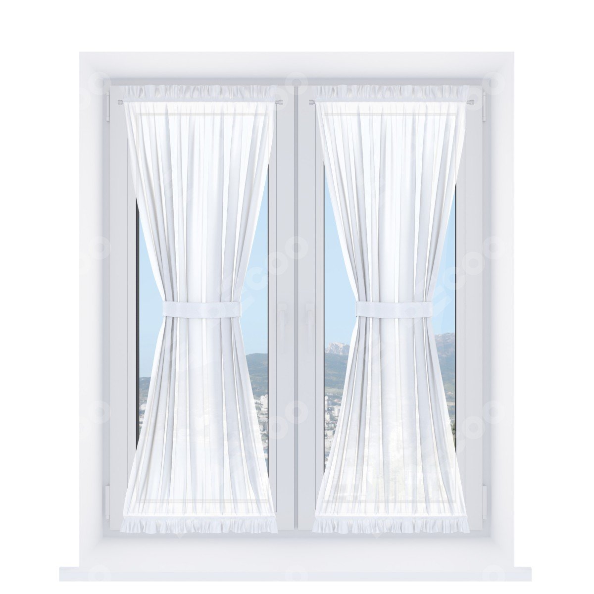 Штора «Песочные часы» производителя «Cortin», используется для створок окон и дверей, пошита из ткани однотонная белоснежная, артикул ткани 41217.