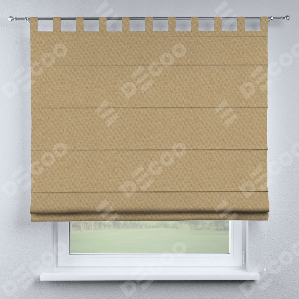 Римская штора производителя «Cortin», используется для проёма, пошита из ткани лён димаут тёмно-бежевый, артикул ткани 83037. Данная модель пошита на петлях, комплектуется на выбор круглым карнизом и подходит для монтажа на стену. Римская штора на петлях имеет простую систему регулировки высоты, отличительным преимуществом данной модели является простой способ монтажа. Достаточно повесить ее на трубу и штора готова!