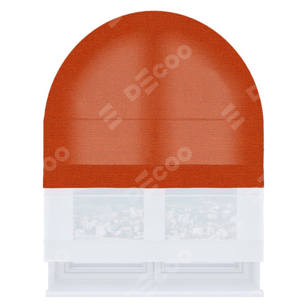 Римская штора день-ночь производителя «Cortin», используется для арочного проёма, пошита из двух полотен, с лицевой стороны лён терракотовый артикул 53440, вторая ткань тюль (по стандарту комплектуется тюль белого цвета артикул V-01). Штора шьётся по индивидуальным размерам, для данного типа римской шторы возможная ширина от 60 до 300 см. Удобное управление каждой шторой отдельно.