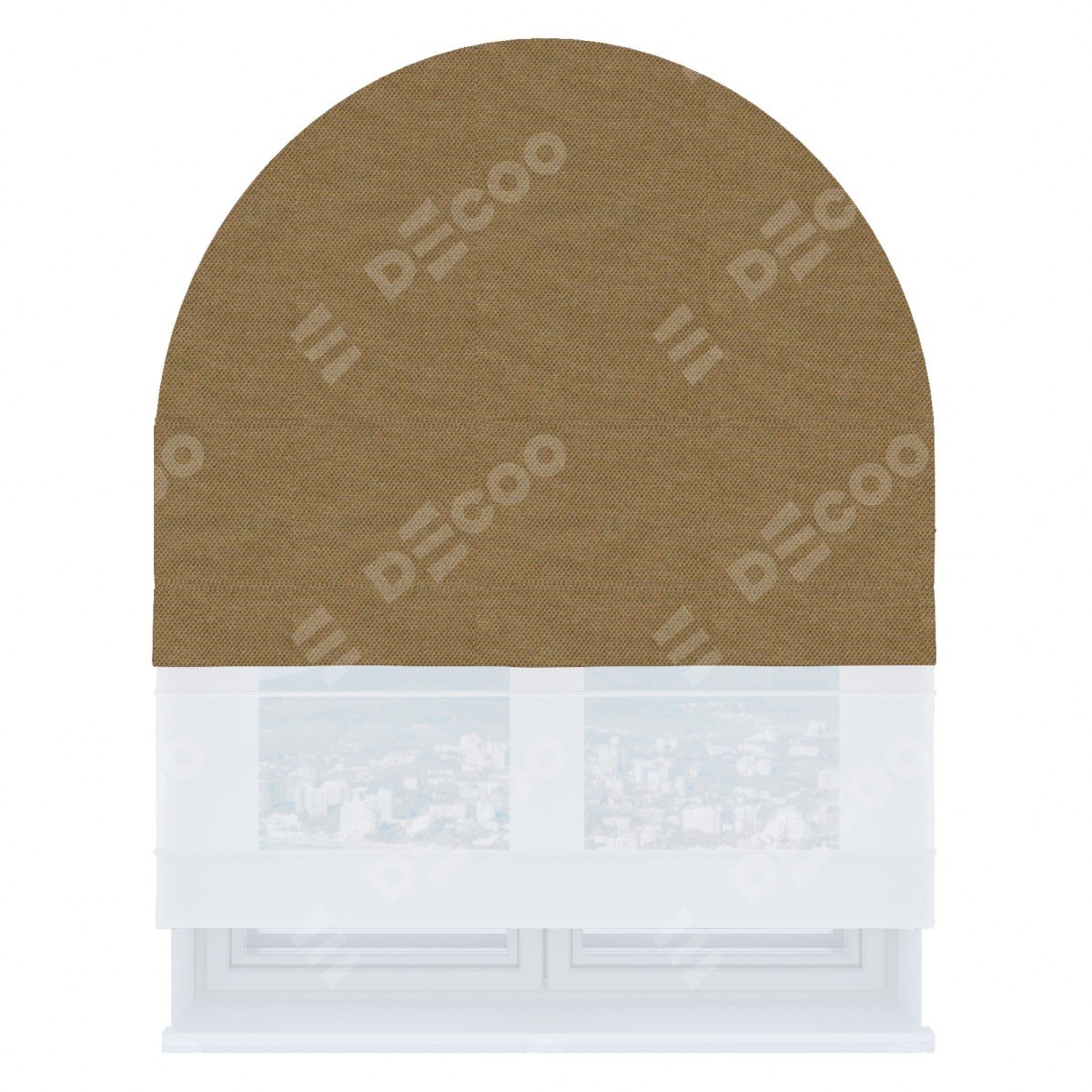 Римская штора день-ночь производителя «Cortin», используется для арочного проёма, пошита из двух полотен, с лицевой стороны лён димаут коричневый артикул 83026, вторая ткань тюль (по стандарту комплектуется тюль белого цвета артикул V-01). Штора шьётся по индивидуальным размерам, для данного типа римской шторы возможная ширина от 60 до 300 см. Удобное управление каждой шторой отдельно.