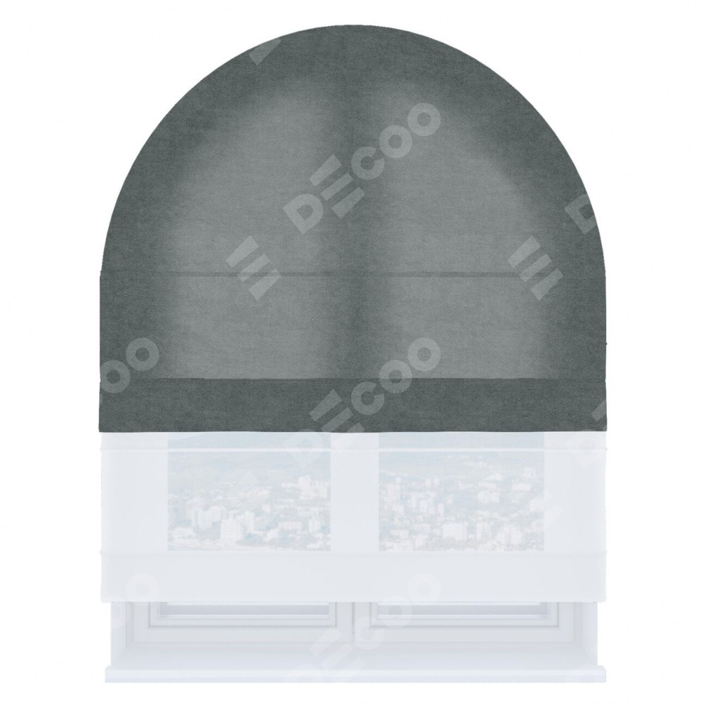 Римская штора день-ночь производителя «Cortin», используется для арочного проёма, пошита из двух полотен, с лицевой стороны вельвет серый артикул 85542, вторая ткань тюль (по стандарту комплектуется тюль белого цвета артикул V-01). Штора шьётся по индивидуальным размерам, для данного типа римской шторы возможная ширина от 60 до 300 см. Удобное управление каждой шторой отдельно.