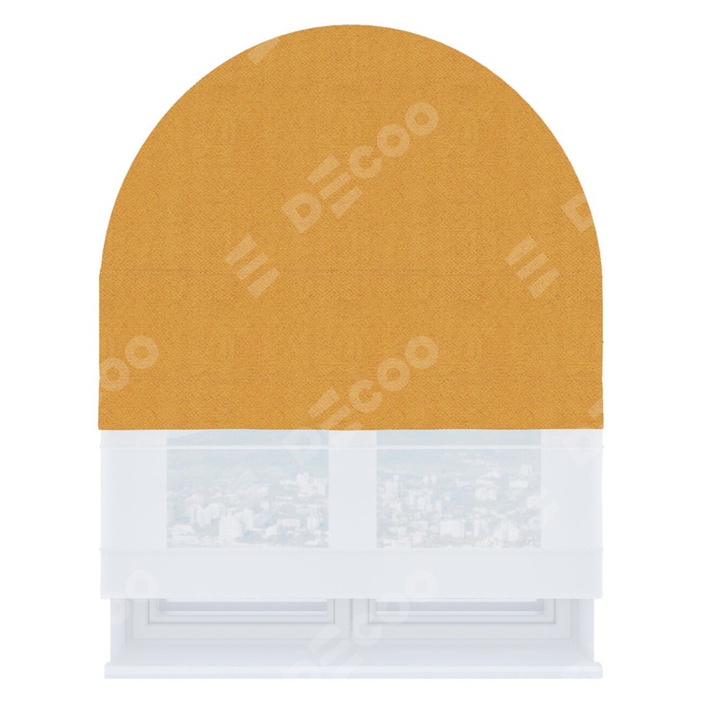 Римская штора день-ночь производителя «Cortin», используется для арочного проёма, пошита из двух полотен, с лицевой стороны блэкаут тиснение с блеском золотой артикул 34626, вторая ткань тюль (по стандарту комплектуется тюль белого цвета артикул V-01). Изнаночная сторона основного материала черного цвета, что обеспечивает необходимую светонепроницаемость. Штора шьётся по индивидуальным размерам, для данного типа римской шторы возможная ширина от 60 до 300 см. Удобное управление каждой шторой отдельно.