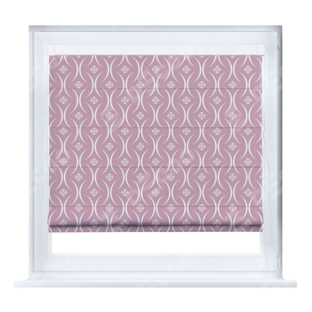 Римская штора производителя «Cortin», устанавливается на створку окна, пошита из ткани блэкаут с нанесением сублимационной печати «Воздушный узор розовый». Штора шьётся по индивидуальным размерам, для данного типа римской шторы возможная ширина от 35 до 150 см., высота до 250 см.