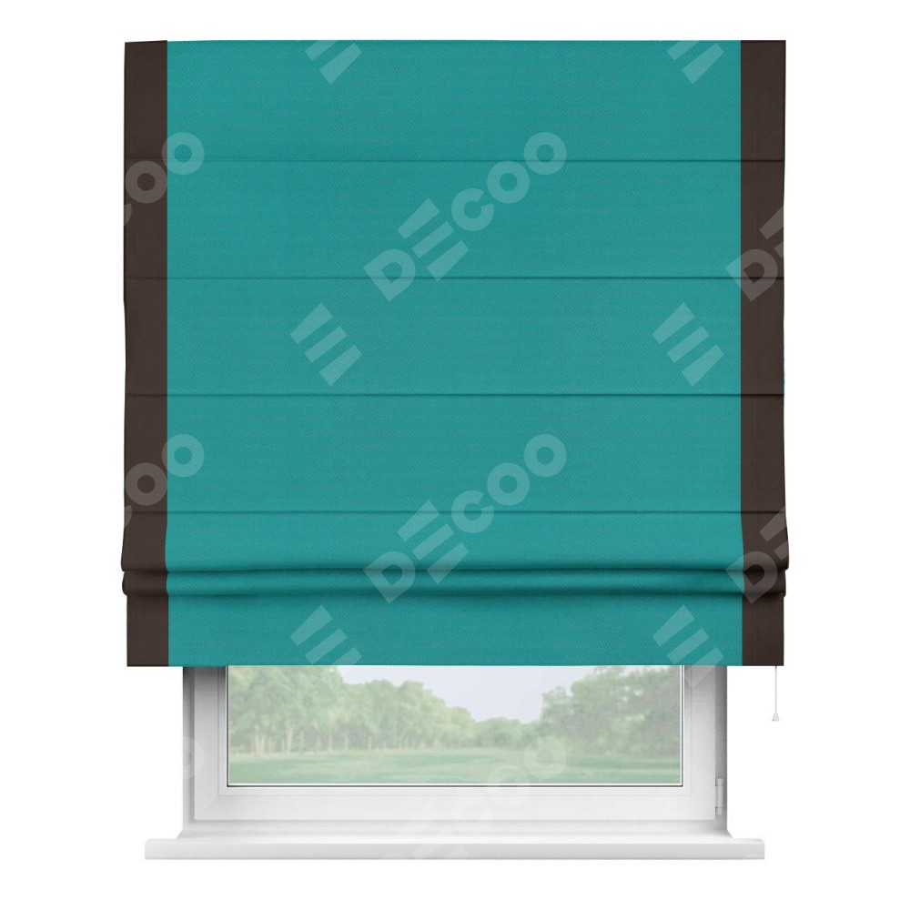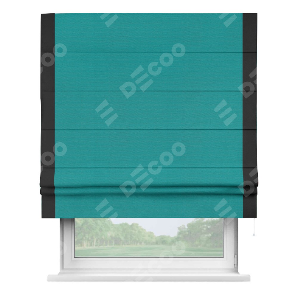 Римская штора «Кортин» с кантом Стрим Дуо, для проема, ткань блэкаут однотонный бирюзовый