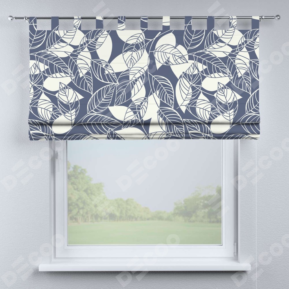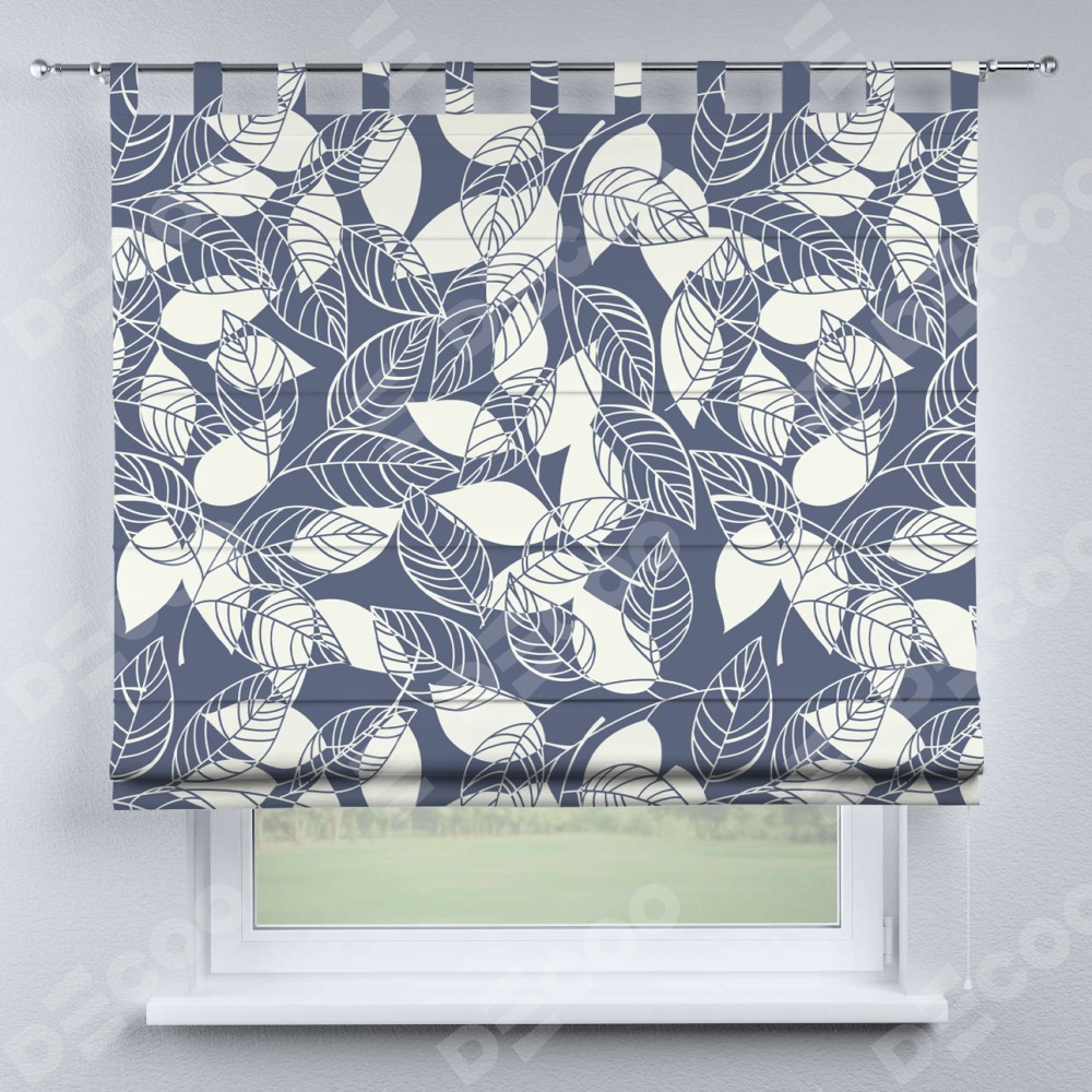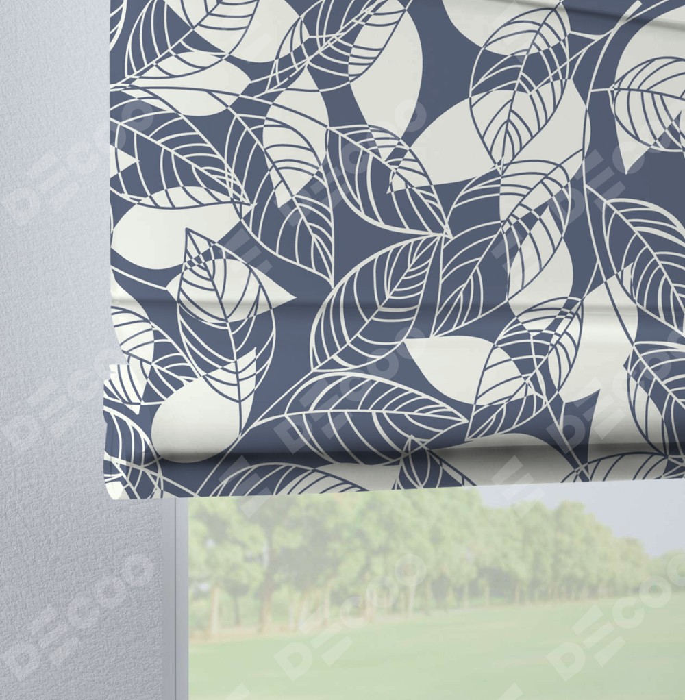 Римская штора производителя «Cortin», используется для проёма, пошита из ткани блэкаут с нанесением сублимационной печати «Прозрачные листья». Данная модель пошита на петлях, комплектуется на выбор круглым карнизом и подходит для монтажа на стену. Римская штора на петлях имеет простую систему регулировки высоты, отличительным преимуществом данной модели является простой способ монтажа. Достаточно повесить ее на трубу и штора готова!
