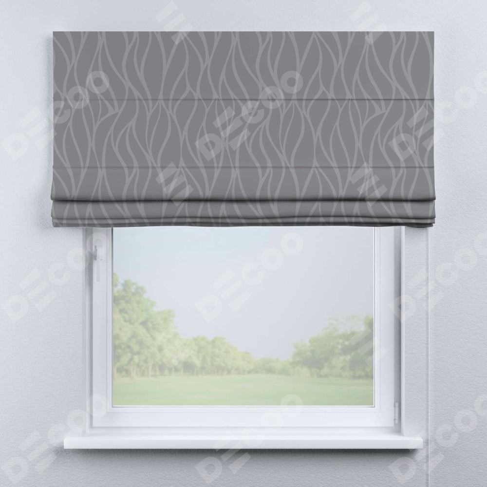 Римская штора производителя «Cortin», используется для проёма, пошита из ткани блэкаут с нанесением сублимационной печати «Саванна графит». Имеет универсальный механизм и подходит для монтажа: на потолок, на стену и в нишу.