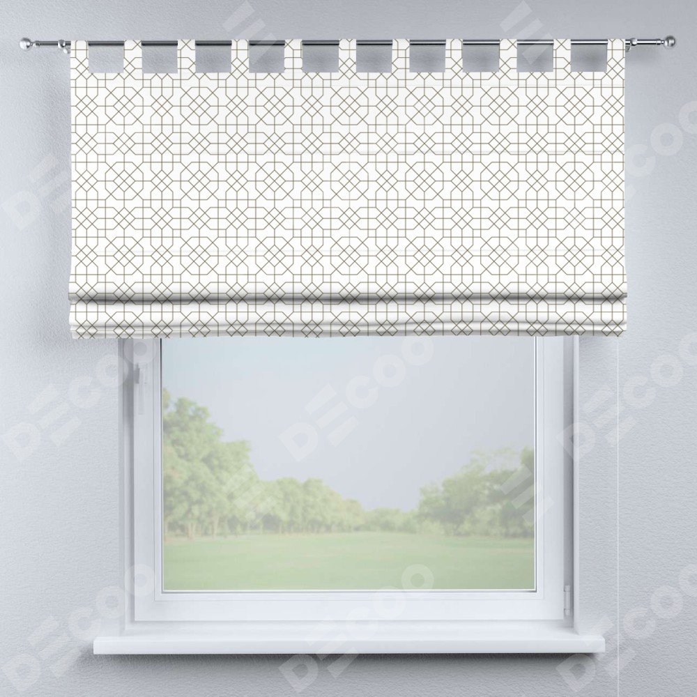 Римская штора производителя «Cortin», используется для проёма, пошита из ткани блэкаут с нанесением сублимационной печати «Орнамент из тонких линий». Данная модель пошита на петлях, комплектуется на выбор круглым карнизом и подходит для монтажа на стену. Римская штора на петлях имеет простую систему регулировки высоты, отличительным преимуществом данной модели является простой способ монтажа. Достаточно повесить ее на трубу и штора готова!