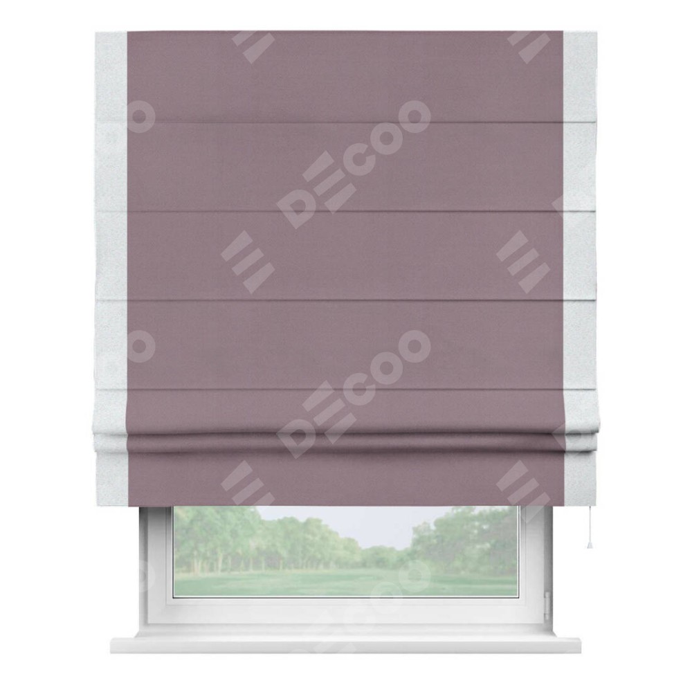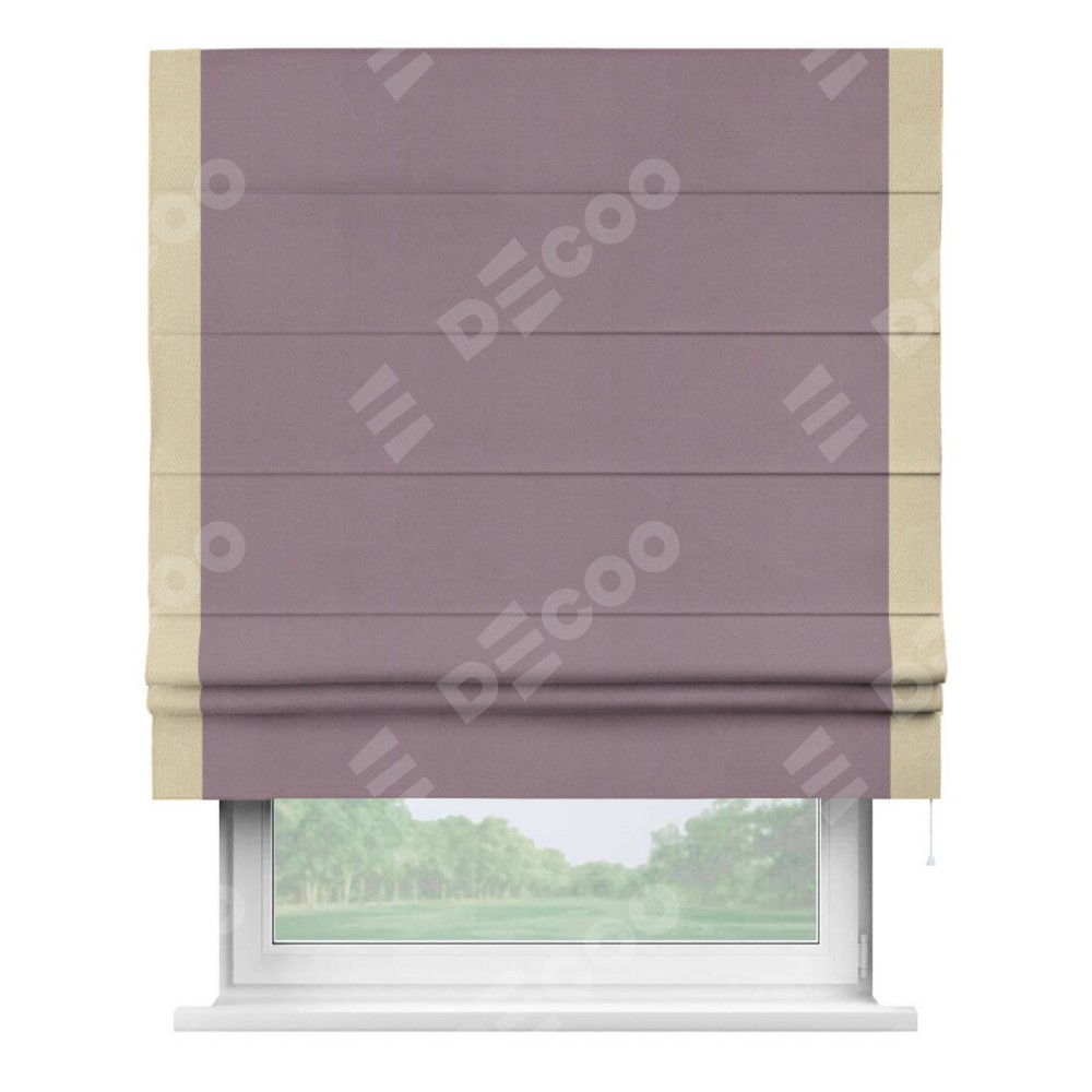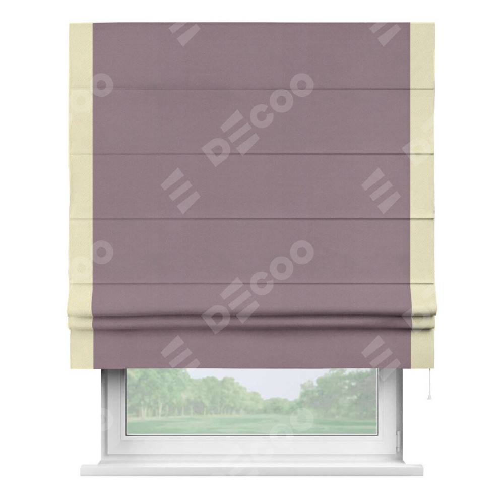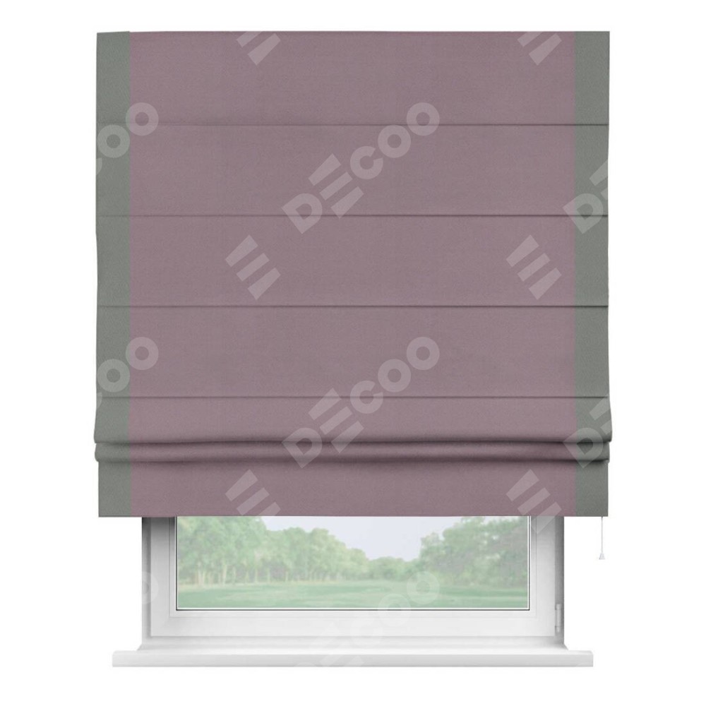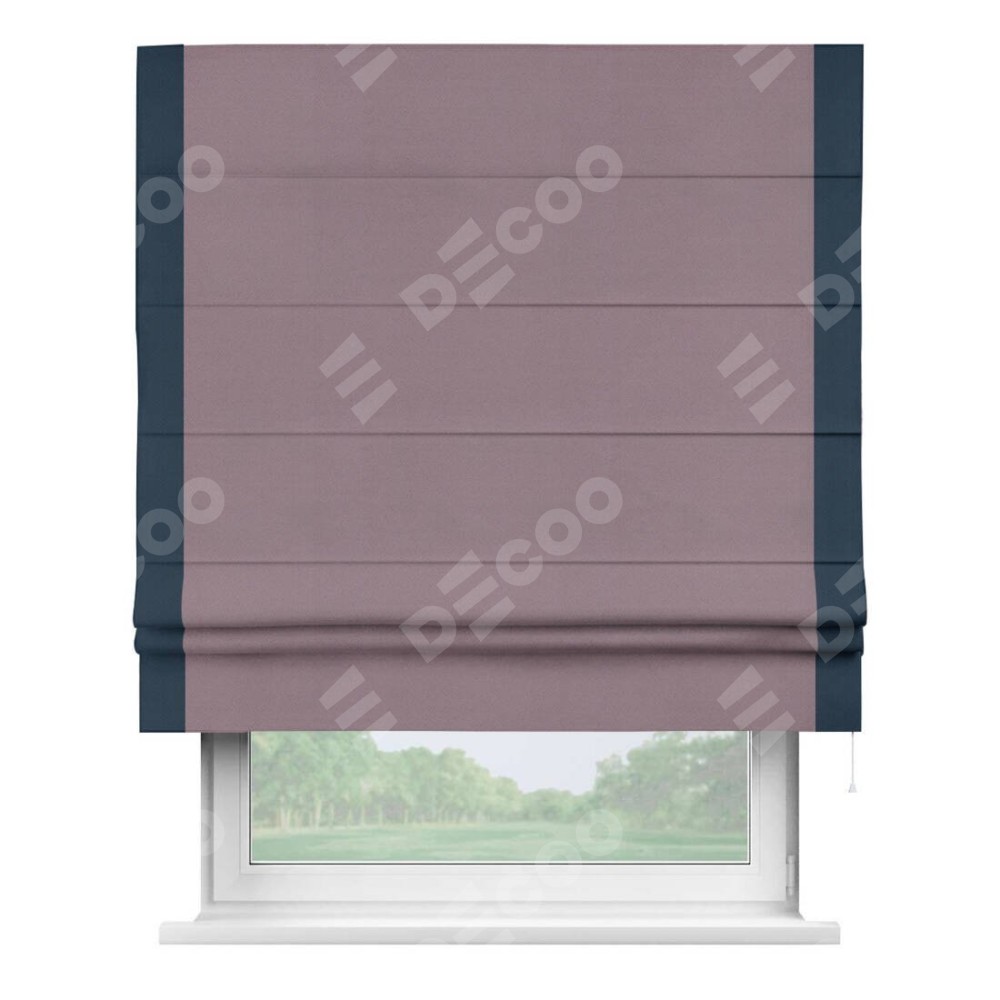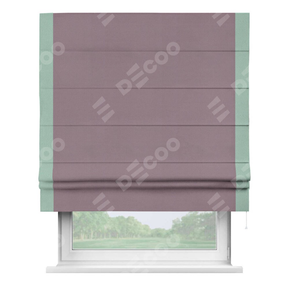 Римская штора производителя «Cortin», используется для проёма, пошита из ткани блэкаут однотонный брусника, артикул ткани 88302. Отделка шторы кантом «Стрим Дуо», ткань для канта используется из блэкаута однотонного разной расцветки на выбор. Имеет универсальный механизм и подходит для монтажа: на потолок, на стену и в нишу.