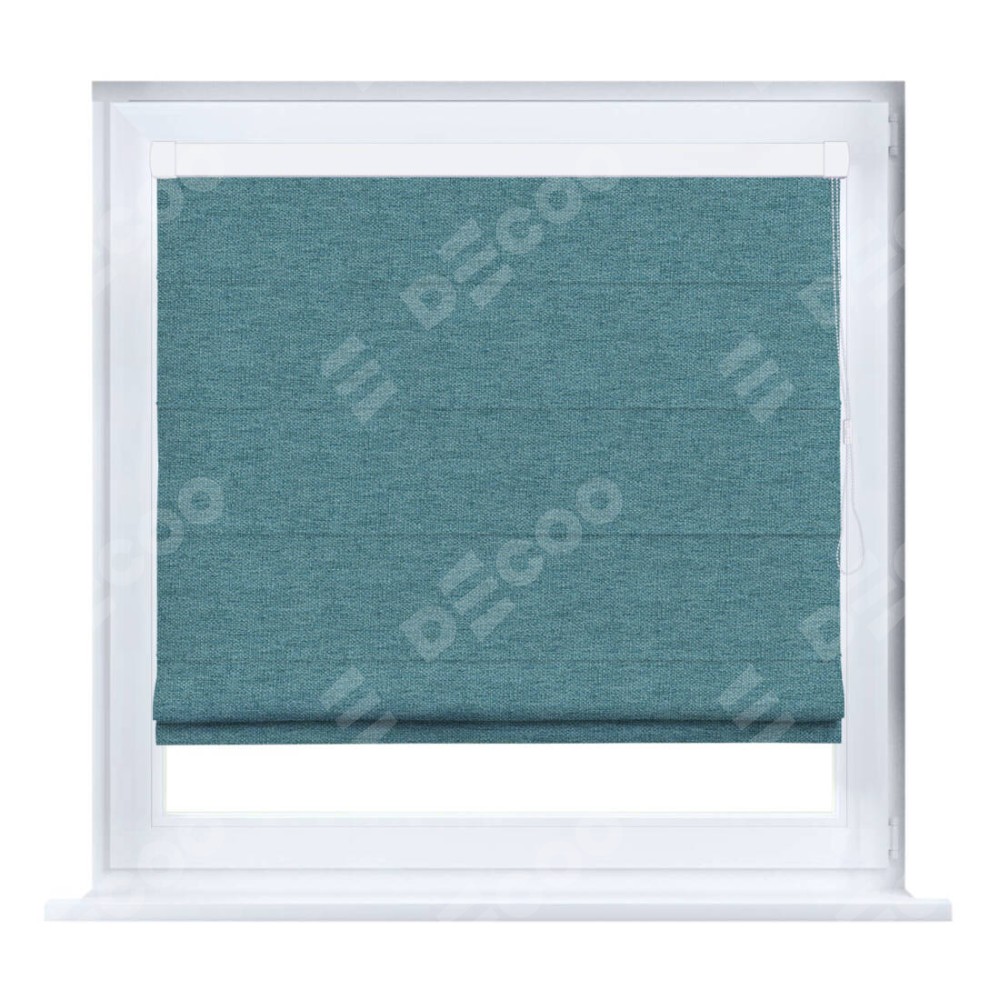 Римская штора производителя «Cortin», устанавливается на створку окна, пошита из ткани стиф димаут бирюзовый, артикул 18196. Штора шьётся по индивидуальным размерам, для данного типа римской шторы возможная ширина от 35 до 150 см., высота до 250 см.
