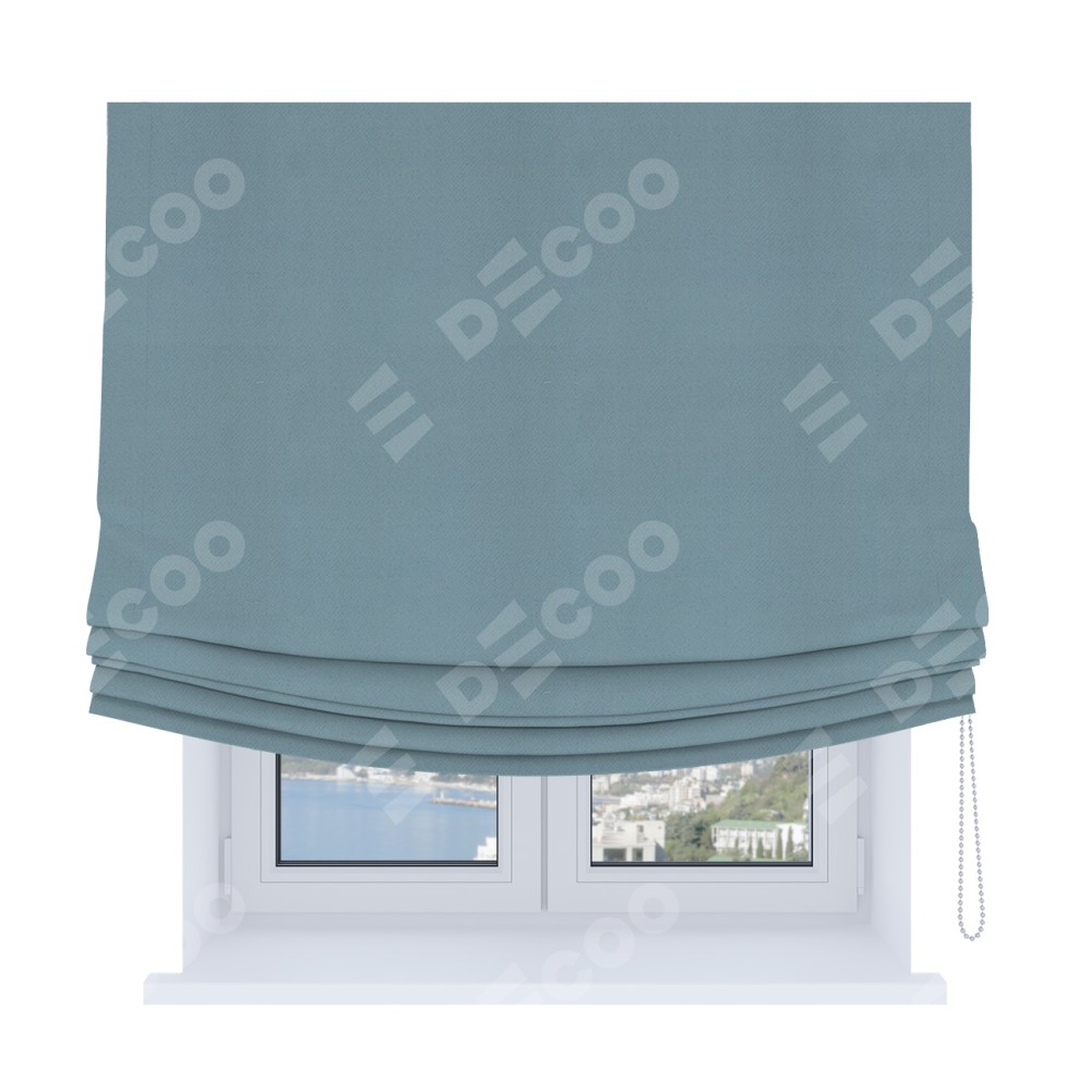 Римская штора Soft производителя «Cortin», используется для проёма, пошита из ткани блэкаут однотонный серо-голубой, артикул ткани 29327−2. Имеет универсальный механизм и подходит для монтажа: на потолок, на стену и в нишу. В отличие от стандартных римских штор, римская штора Soft не имеет горизонтальных вставок и нижнего отвеса. Это позволяет ткани произвольно драпироваться в свободные мягкие складки.