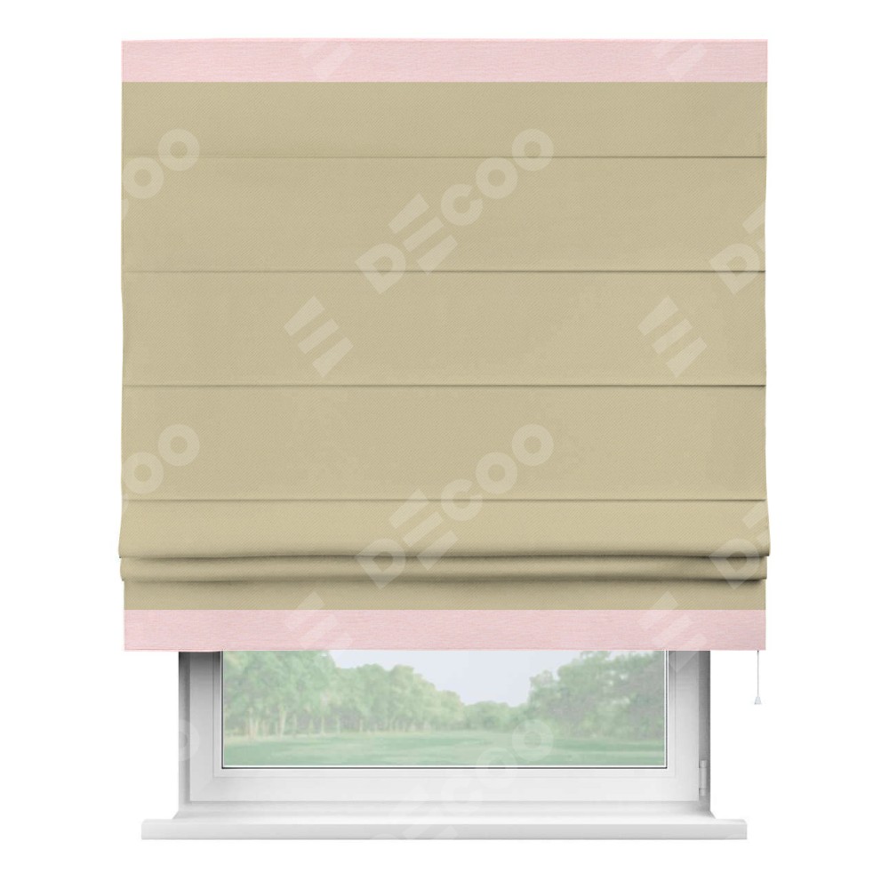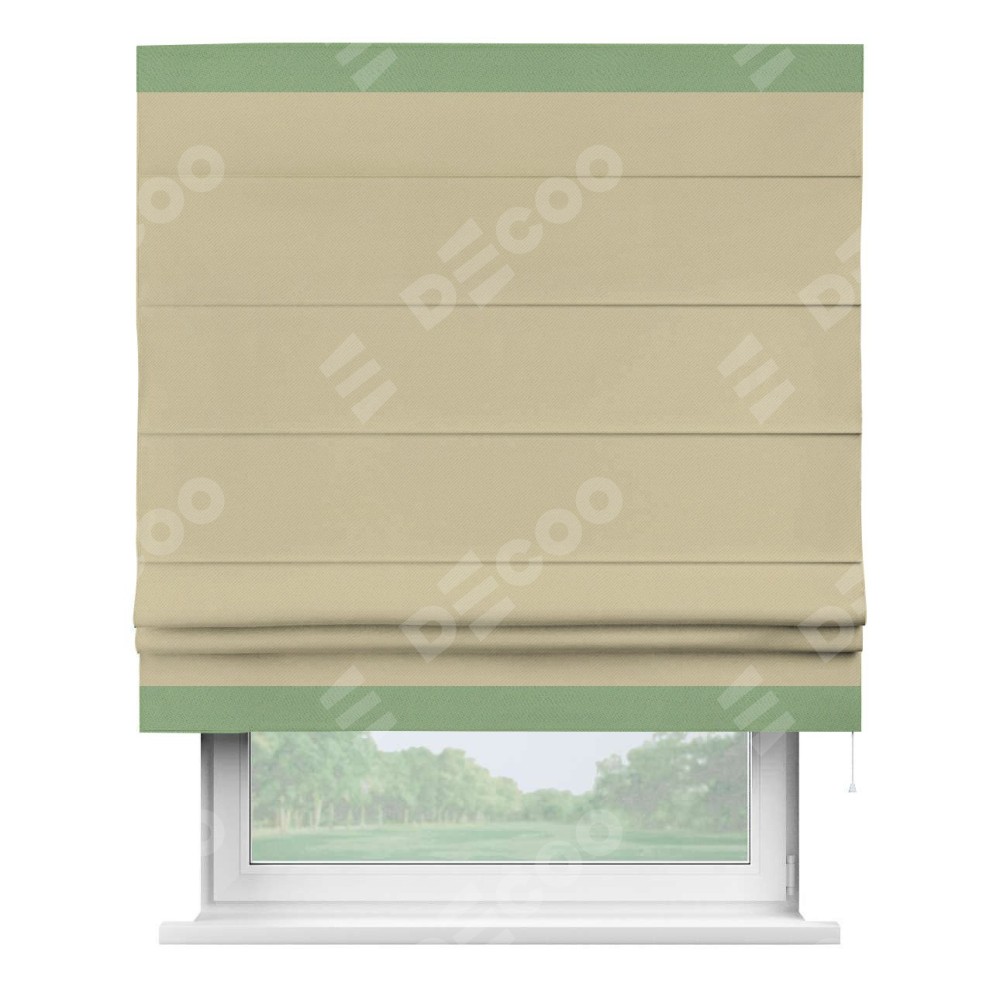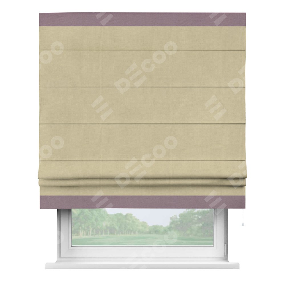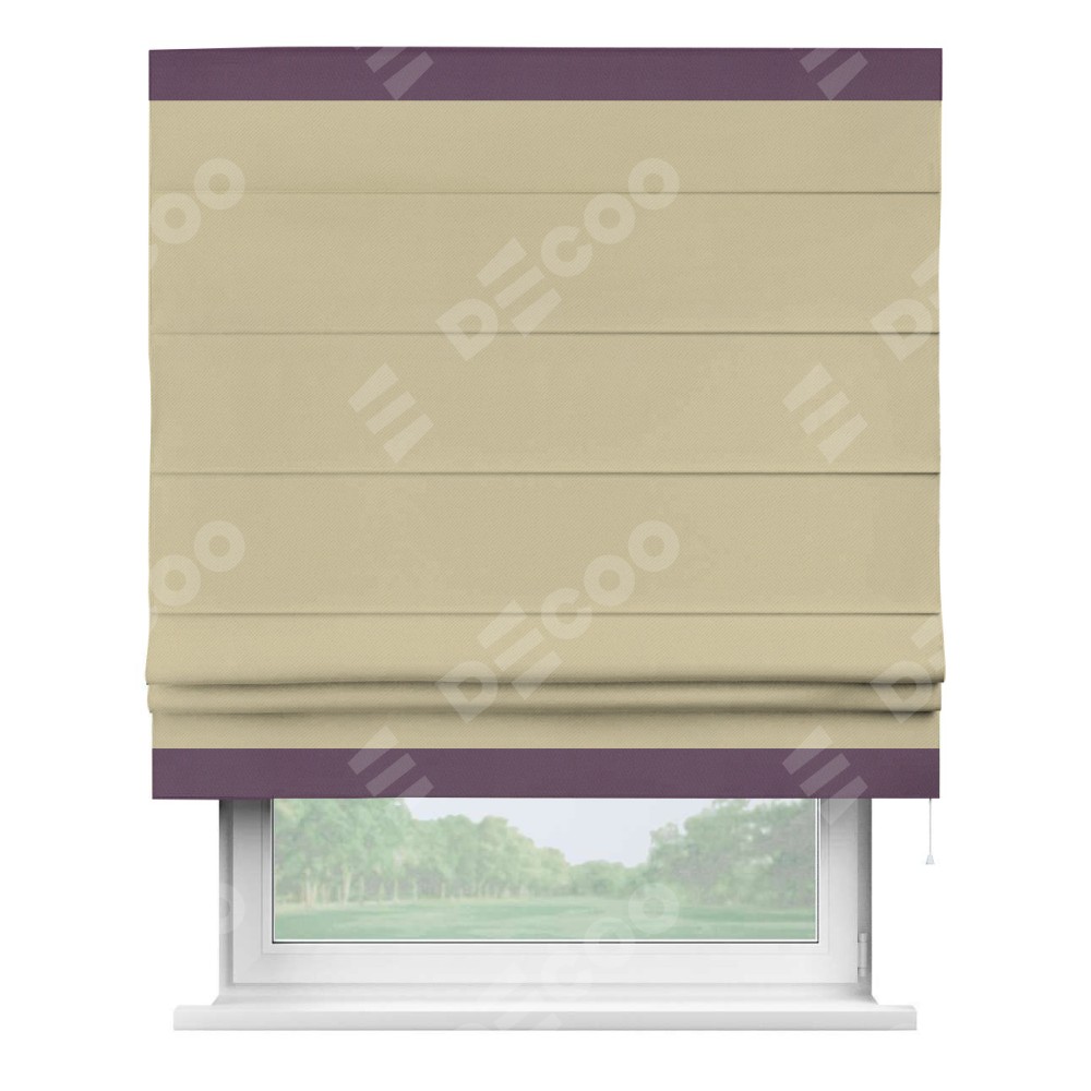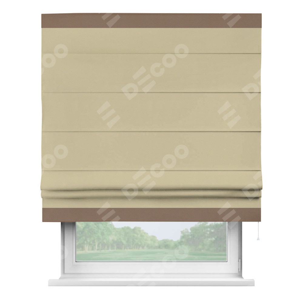 Римская штора производителя «Cortin», используется для проёма, пошита из ткани блэкаут однотонный кофейный, артикул ткани 13130. Отделка шторы кантом «Горизонт», ткань для канта используется из блэкаута однотонного разной расцветки на выбор. Имеет универсальный механизм и подходит для монтажа: на потолок, на стену и в нишу.