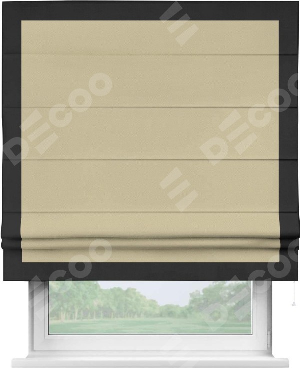Римская штора производителя «Cortin», используется для проёма, пошита из ткани блэкаут однотонный кофейный, артикул ткани 13130. Отделка шторы кантом «Чесс», ткань для канта используется из блэкаута однотонного разной расцветки на выбор. Имеет универсальный механизм и подходит для монтажа: на потолок, на стену и в нишу.