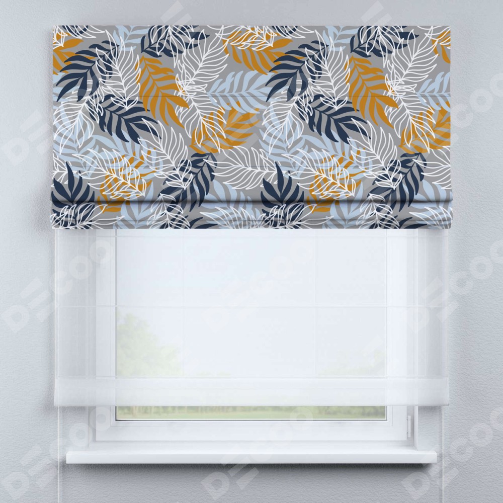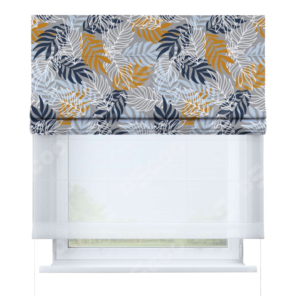 Римская штора день-ночь производителя «Cortin», используется для проёма, пошита из двух полотен, с лицевой блэкаут с нанесением сублимационной печати «Тропический остров», вторая ткань тюль (по стандарту комплектуется тюль белого цвета артикул V-01). Имеет универсальный механизм и подходит для монтажа: на потолок, на стену и в нишу.