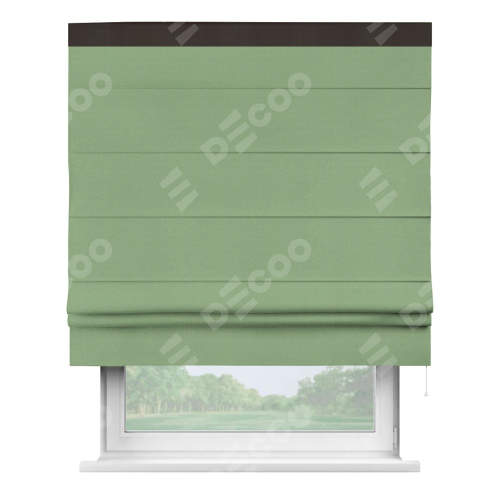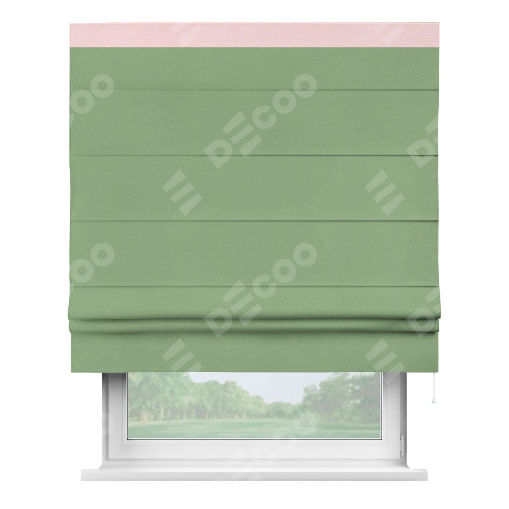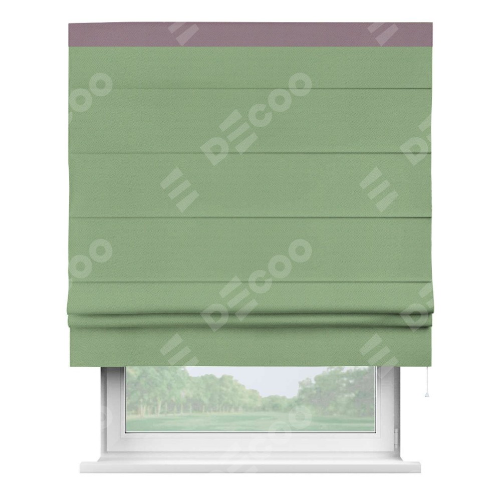 Римская штора производителя «Cortin», используется для проёма, пошита из ткани блэкаут однотонный оливковый, артикул ткани 88300. Отделка шторы кантом «Кинг», ткань для канта используется из блэкаута однотонного разной расцветки на выбор. Имеет универсальный механизм и подходит для монтажа: на потолок, на стену и в нишу.