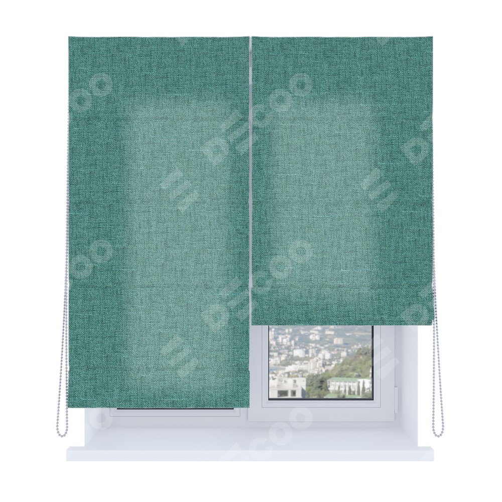 Римская штора производителя «Cortin», используется для проёма, пошита из ткани лён кашемир бирюзовый, артикул ткани 17214. Имеет универсальный механизм и подходит для монтажа: на потолок, на стену и в нишу. Удобное управление каждой шторой отдельно.