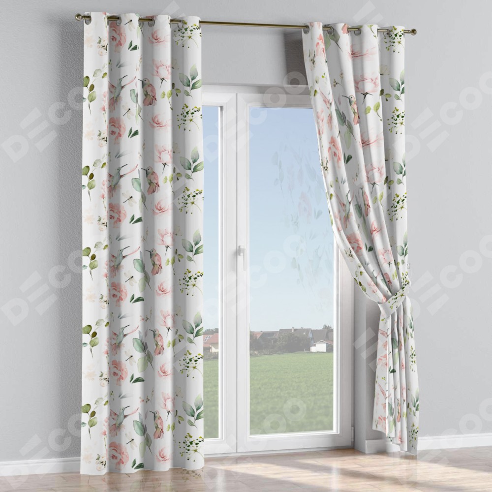 Комплект прямых штор, от производителя «Cortin», пошиты из ткани блэкаут с нанесением сублимационной печати «Уютный сад». Данная модель пошита на люверсах, комплектуется на выбор круглым карнизом и подходит для монтажа на стену или потолок. Прямые шторы на люверсах шьются по стандарту с коэффициентом 1/2 (на 100 см. ширины проёма 200 см. ширины ткани), отличительным преимуществом данной модели является простой способ монтажа. Достаточно повесить ее на трубу и штора готова!