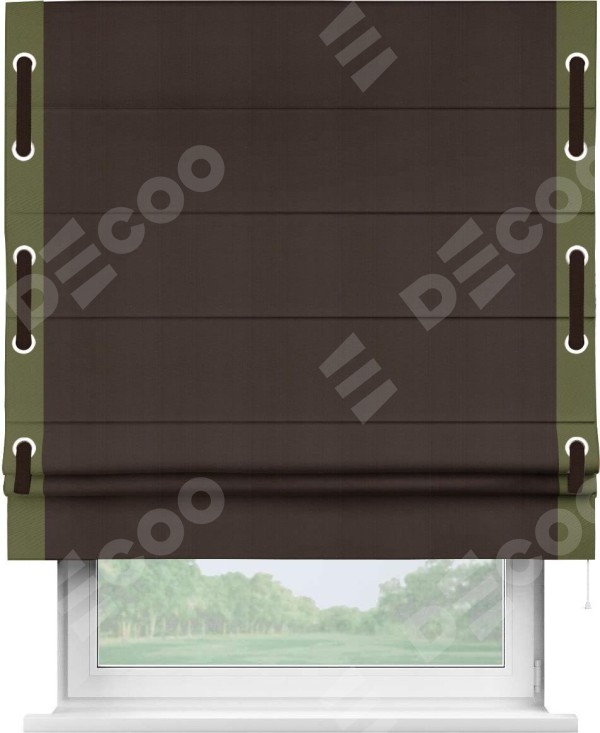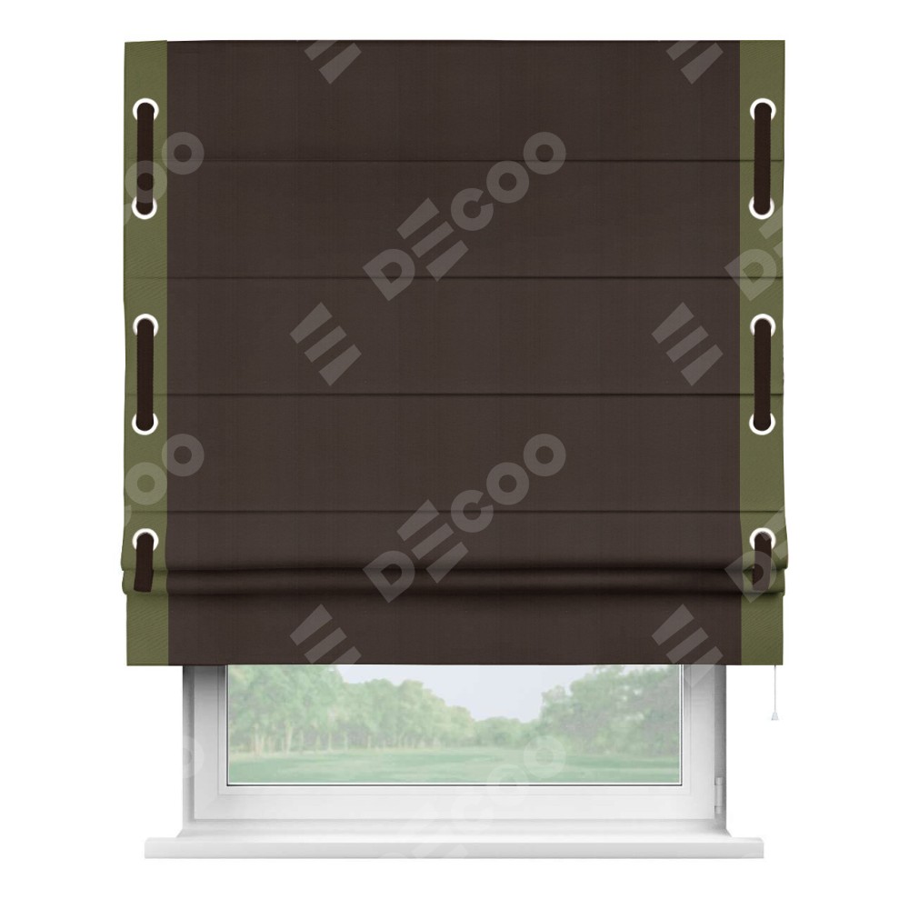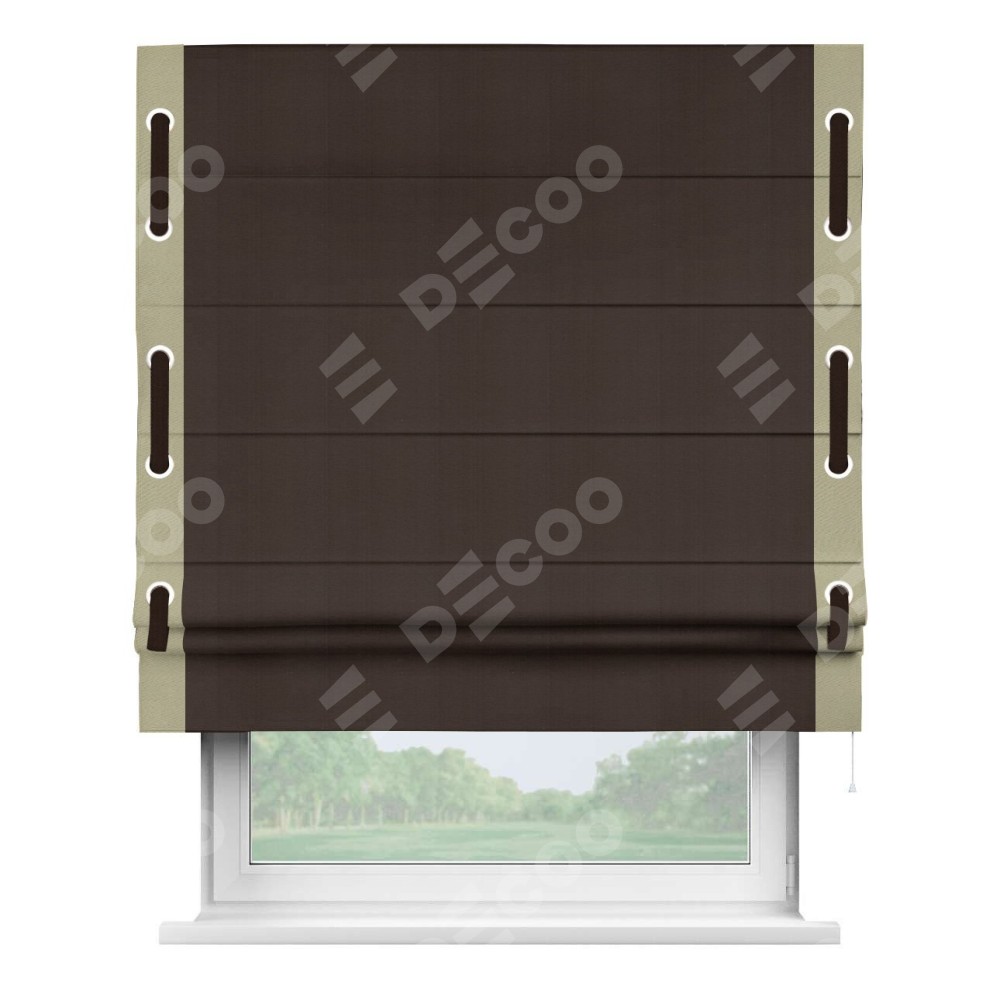 Римская штора «Кортин» с кантом Стрим Дуо (люверсы с пояском), для проема, ткань блэкаут однотонный тёмно-коричневый