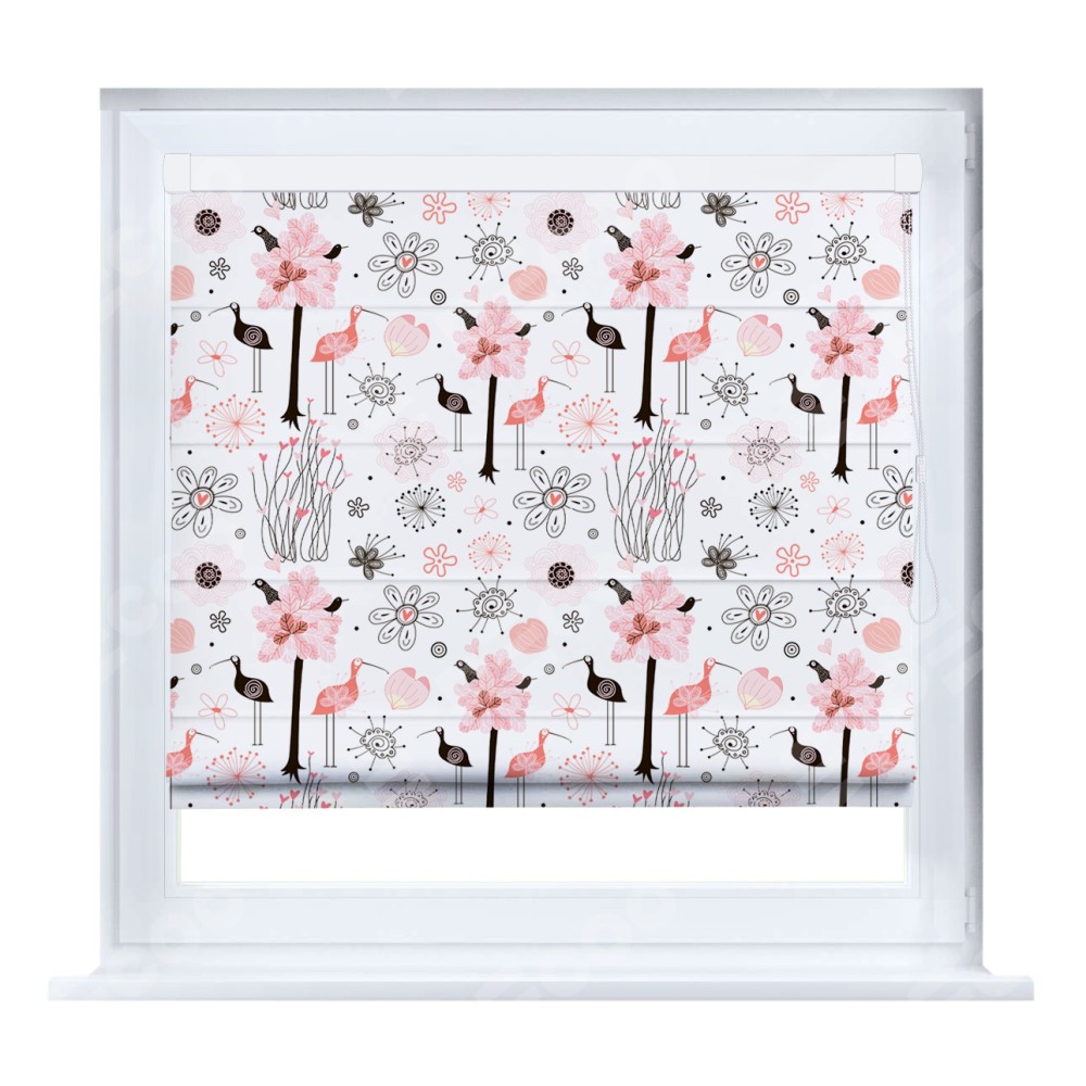 Римская штора производителя «Cortin», устанавливается на створку окна, пошита из ткани блэкаут с нанесением сублимационной печати «Любопытные птички». Штора шьётся по индивидуальным размерам, для данного типа римской шторы возможная ширина от 35 до 150 см., высота до 250 см.