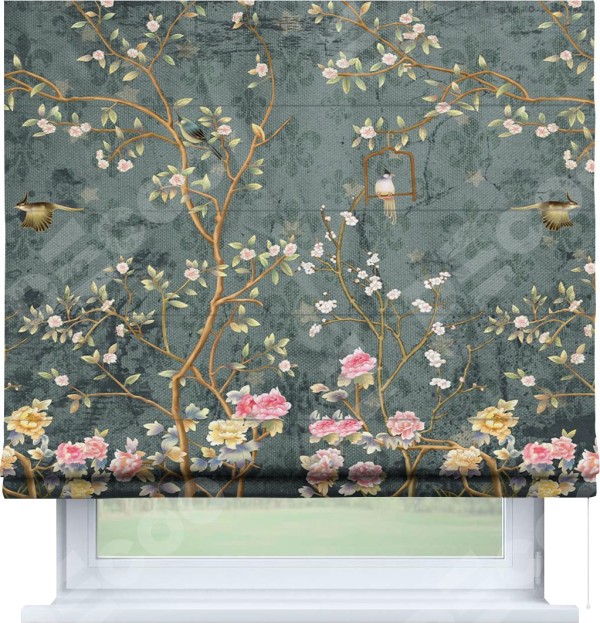 Римская штора производителя «Cortin», используется для проёма, пошита из ткани блэкаут с нанесением сублимационной печати «Тенистый сад». Имеет универсальный механизм и подходит для монтажа: на потолок, на стену и в нишу.