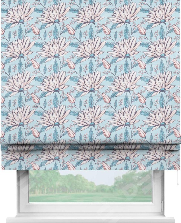 Римская штора производителя «Cortin», используется для проёма, пошита из ткани блэкаут с нанесением сублимационной печати «Романтическое утро». Имеет универсальный механизм и подходит для монтажа: на потолок, на стену и в нишу.
