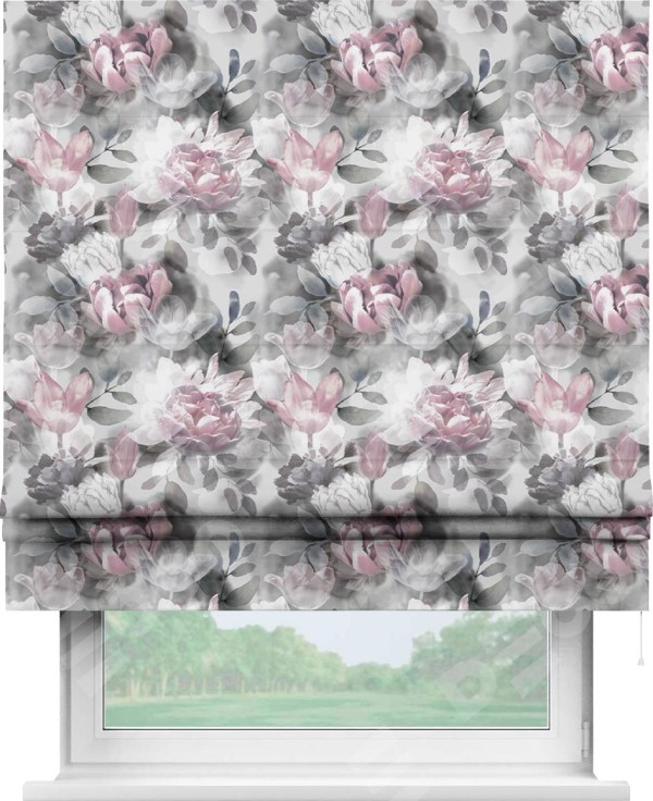 Римская штора производителя «Cortin», используется для проёма, пошита из ткани блэкаут с нанесением сублимационной печати «Цветочная композиция». Имеет универсальный механизм и подходит для монтажа: на потолок, на стену и в нишу.