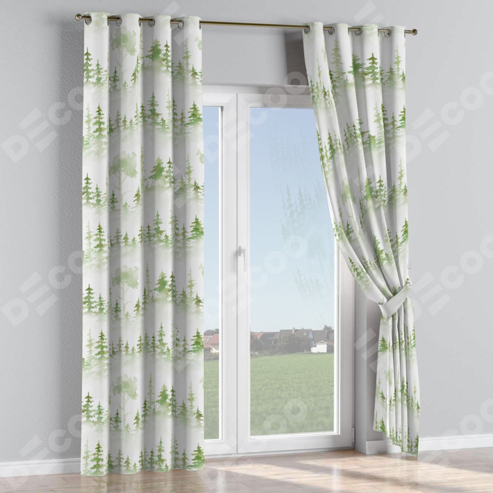Комплект прямых штор, от производителя «Cortin», пошиты из ткани блэкаут с нанесением сублимационной печати «Туманный лес». Данная модель пошита на люверсах, комплектуется на выбор круглым карнизом и подходит для монтажа на стену или потолок. Прямые шторы на люверсах шьются по стандарту с коэффициентом 1/2 (на 100 см. ширины проёма 200 см. ширины ткани), отличительным преимуществом данной модели является простой способ монтажа. Достаточно повесить ее на трубу и штора готова!